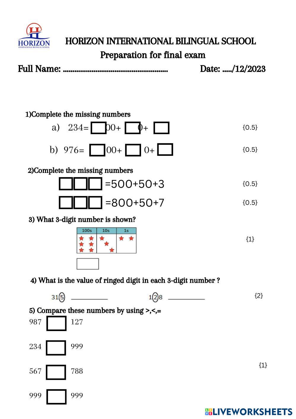 Created byDilafruz Turanova Math Numbers Age 6-11 level: grade 2 English Author's Instructions My Google Classroom Courses × 0 classes selected (0 students total) Quick Access Select all classes (0 classes) All Classes Loading courses... Cancel Share Share to selected Course __COURSE_NAME__ __STUDENT_NAME__ (__STUDENT_EMAIL__) Preparation Math Final grade 2 Download Worksheet Validation Check my answers Emails my answers to my teacher Full name Group/level School subject Teacher's email or key code Close Submit Validating worksheet... (12) Your answers have been sent to your teacher. Good luck! OK We encountered an error submitting your answers. Please try again. OK Advertisement | Go Ad Free Created byDilafruz Turanova Math Numbers Age 6-11 level: grade 2 English Author's Instructions