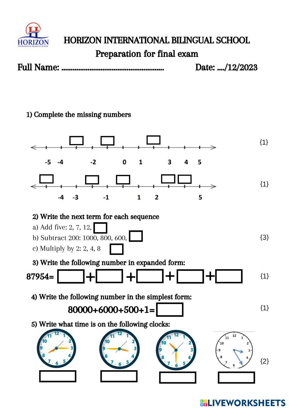 Created byDilafruz Turanova Math Numbers Age 7-13 level: Grade 3 English Author's Instructions My Google Classroom Courses × 0 classes selected (0 students total) Quick Access Select all classes (0 classes) All Classes Loading courses... Cancel Share Share to selected Course __COURSE_NAME__ __STUDENT_NAME__ (__STUDENT_EMAIL__) Preparation Math Final grade 3 Download Worksheet Validation Check my answers Emails my answers to my teacher Full name Group/level School subject Teacher's email or key code Close Submit Validating worksheet... (12) Your answers have been sent to your teacher. Good luck! OK We encountered an error submitting your answers. Please try again. OK Advertisement | Go Ad Free Created byDilafruz Turanova Math Numbers Age 7-13 level: Grade 3 English Author's Instructions