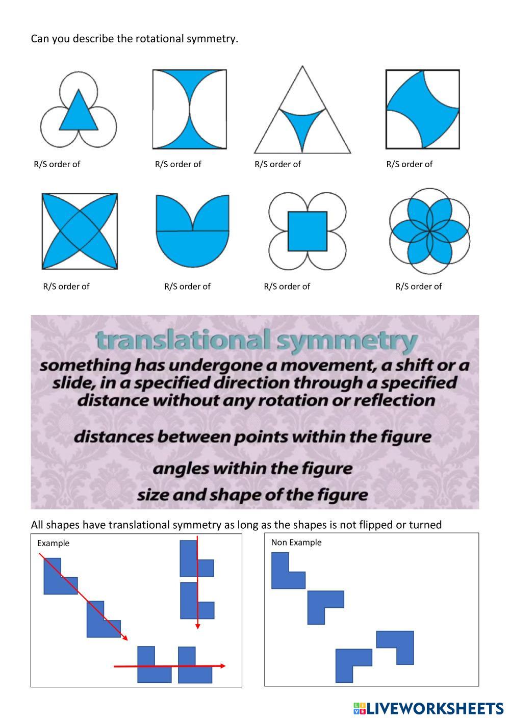 Created byBrett Wallace Math Symmetry Age 10-15 level: 5 English Author's Instructions My Google Classroom Courses × 0 classes selected (0 students total) Quick Access Select all classes (0 classes) All Classes Loading courses... Cancel Share Share to selected Course __COURSE_NAME__ __STUDENT_NAME__ (__STUDENT_EMAIL__) Symmetry Review Download Worksheet Validation Check my answers Emails my answers to my teacher Full name Group/level School subject Teacher's email or key code Close Submit Validating worksheet... (12) Your answers have been sent to your teacher. Good luck! OK We encountered an error submitting your answers. Please try again. OK Advertisement | Go Ad Free Created byBrett Wallace Math Symmetry Age 10-15 level: 5 English Author's Instructions