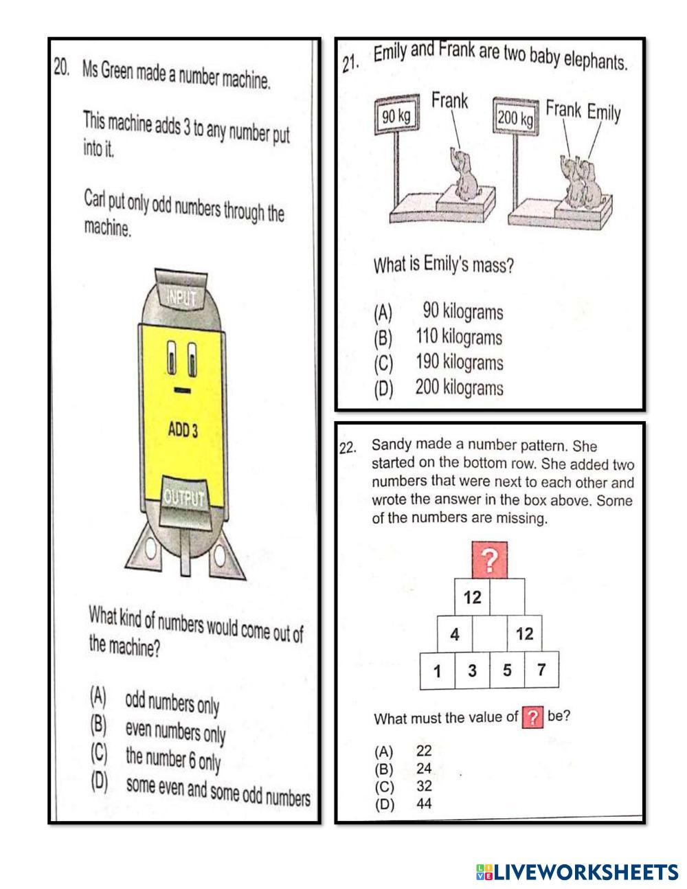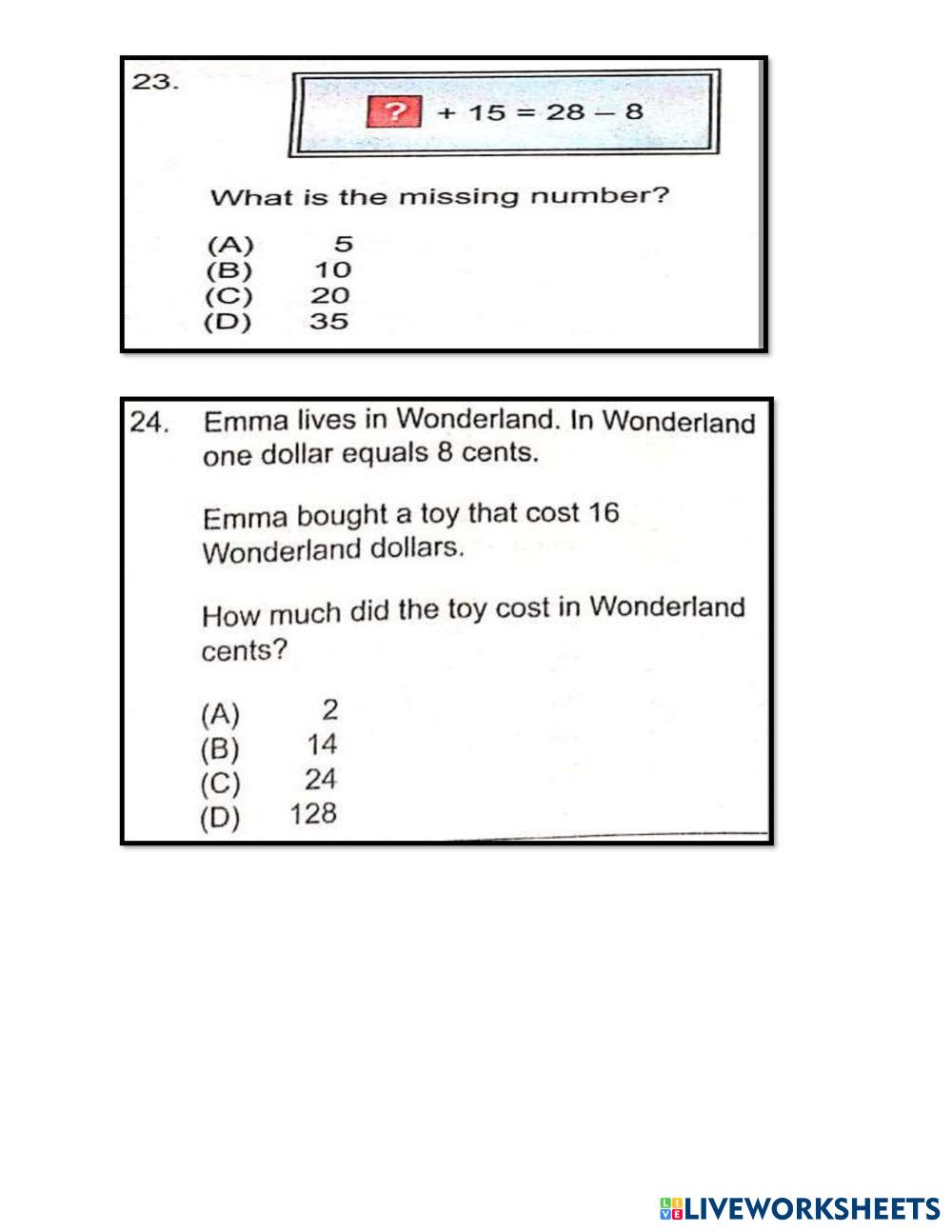 Created byMiss Shahida Math Choose the correct answer Age 12-16 level: 3 English Author's Instructions solve My Google Classroom Courses × 0 classes selected (0 students total) Quick Access Select all classes (0 classes) All Classes Loading courses... Cancel Share Share to selected Course __COURSE_NAME__ __STUDENT_NAME__ (__STUDENT_EMAIL__) 2019 B Download Worksheet Validation Check my answers Emails my answers to my teacher Full name Group/level School subject Teacher's email or key code Close Submit Validating worksheet... (12) Your answers have been sent to your teacher. Good luck! OK We encountered an error submitting your answers. Please try again. OK Advertisement | Go Ad Free Created byMiss Shahida Math Choose the correct answer Age 12-16 level: 3 English Author's Instructions solve