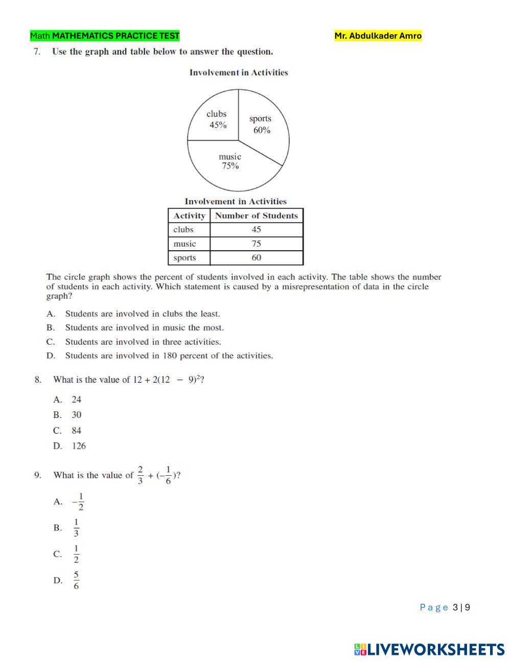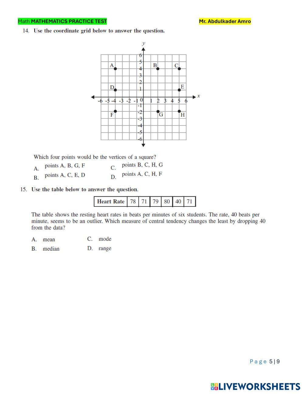 Math MATHEMATICS PRACTICE TEST For Grade 7 to 10