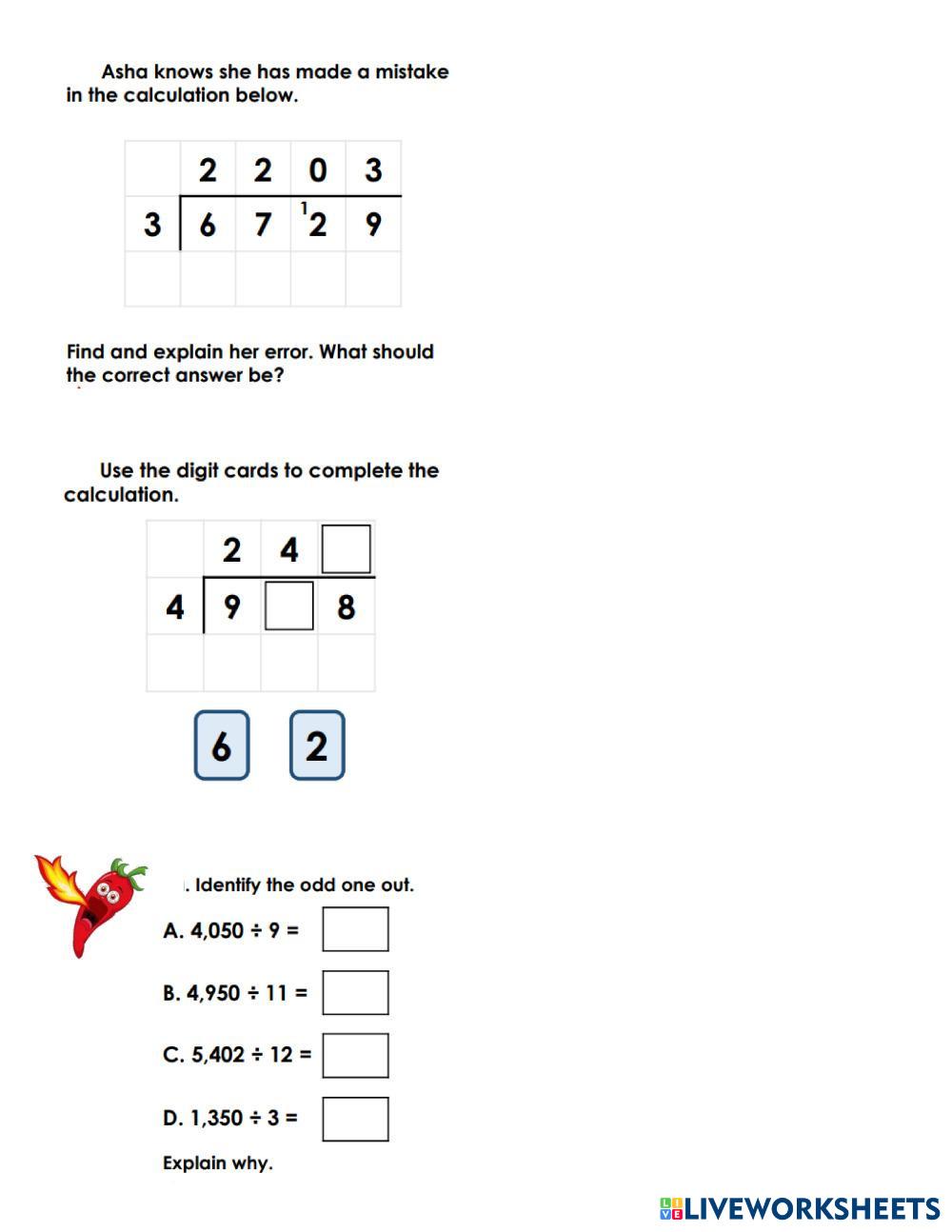 Created by Myoung5B Math Division Age 10-15 level: Grade 5 English Author's Instructions My Google Classroom Courses × 0 classes selected (0 students total) Quick Access Select all classes (0 classes) All Classes Loading courses... Cancel Share Share to selected Course __COURSE_NAME__ __STUDENT_NAME__ (__STUDENT_EMAIL__) Short division extra Download Worksheet Validation Check my answers Emails my answers to my teacher Full name Group/level School subject Teacher's email or key code Close Submit Validating worksheet... (12) Your answers have been sent to your teacher. Good luck! OK We encountered an error submitting your answers. Please try again. OK Advertisement | Go Ad Free Created by Myoung5B Math Division Age 10-15 level: Grade 5 English Author's Instructions