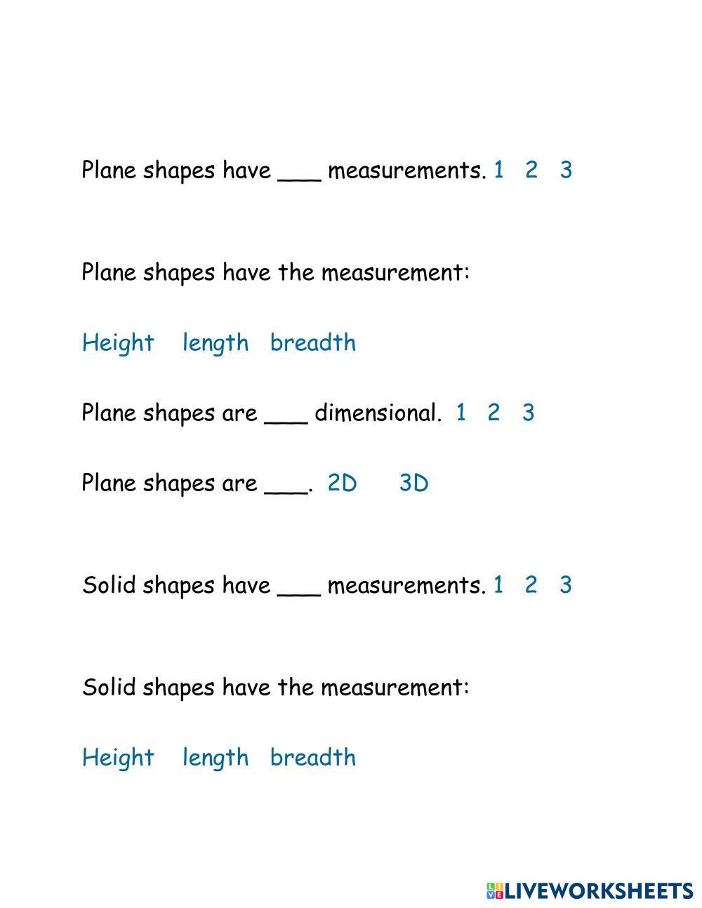 Created byA. Singh Math Solid Shapes Age 5-13 level: GRADE 2 English Author's Instructions My Google Classroom Courses × 0 classes selected (0 students total) Quick Access Select all classes (0 classes) All Classes Loading courses... Cancel Share Share to selected Course __COURSE_NAME__ __STUDENT_NAME__ (__STUDENT_EMAIL__) Solid and Plane Shapes Download Worksheet Validation Check my answers Emails my answers to my teacher Full name Group/level School subject Teacher's email or key code Close Submit Validating worksheet... (12) Your answers have been sent to your teacher. Good luck! OK We encountered an error submitting your answers. Please try again. OK Advertisement | Go Ad Free Created byA. Singh Math Solid Shapes Age 5-13 level: GRADE 2 English Author's Instructions