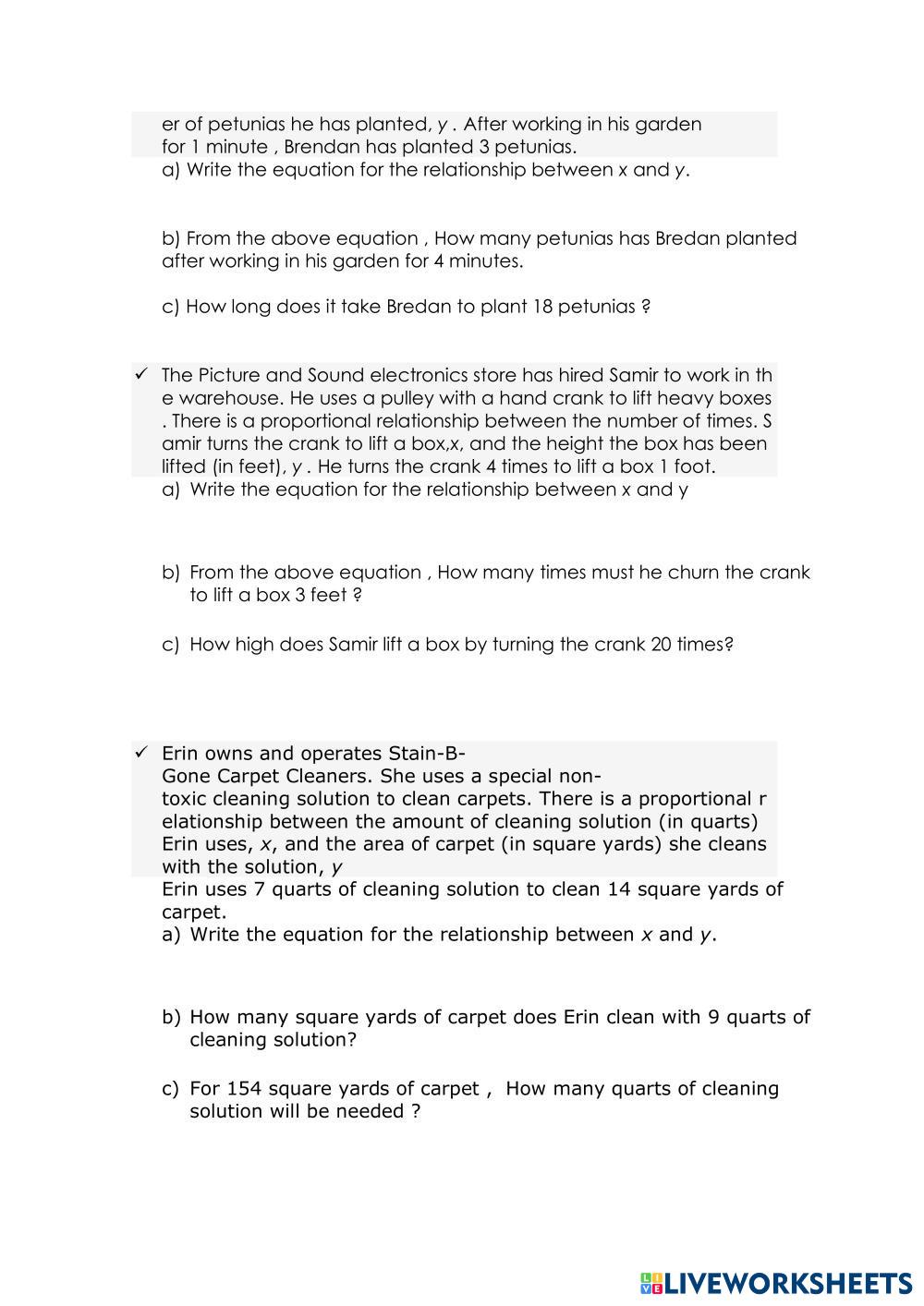 Created bySIMRAN NARANG Math Proportional relationships Age 9-15 level: 6 English Author's Instructions My Google Classroom Courses × 0 classes selected (0 students total) Quick Access Select all classes (0 classes) All Classes Loading courses... Cancel Share Share to selected Course __COURSE_NAME__ __STUDENT_NAME__ (__STUDENT_EMAIL__) Proportional relationships II Download Worksheet Validation Check my answers Emails my answers to my teacher Full name Group/level School subject Teacher's email or key code Close Submit Validating worksheet... (12) Your answers have been sent to your teacher. Good luck! OK We encountered an error submitting your answers. Please try again. OK Advertisement | Go Ad Free Created bySIMRAN NARANG Math Proportional relationships Age 9-15 level: 6 English Author's Instructions