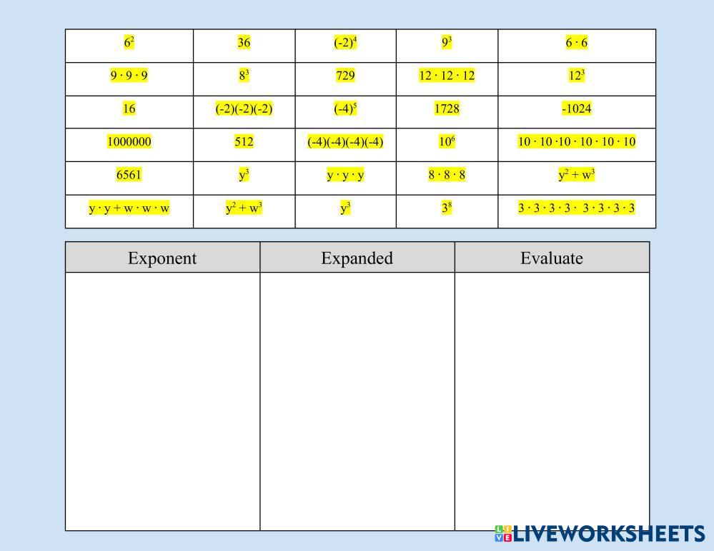 Created by afoss math math Age 14+ level: 9th English Author's Instructions My Google Classroom Courses × 0 classes selected (0 students total) Quick Access Select all classes (0 classes) All Classes Loading courses... Cancel Share Share to selected Course __COURSE_NAME__ __STUDENT_NAME__ (__STUDENT_EMAIL__) Exponent Sort Download Worksheet Validation Check my answers Emails my answers to my teacher Full name Group/level School subject Teacher's email or key code Close Submit Validating worksheet... (12) Your answers have been sent to your teacher. Good luck! OK We encountered an error submitting your answers. Please try again. OK Advertisement | Go Ad Free Created by afoss math math Age 14+ level: 9th English Author's Instructions