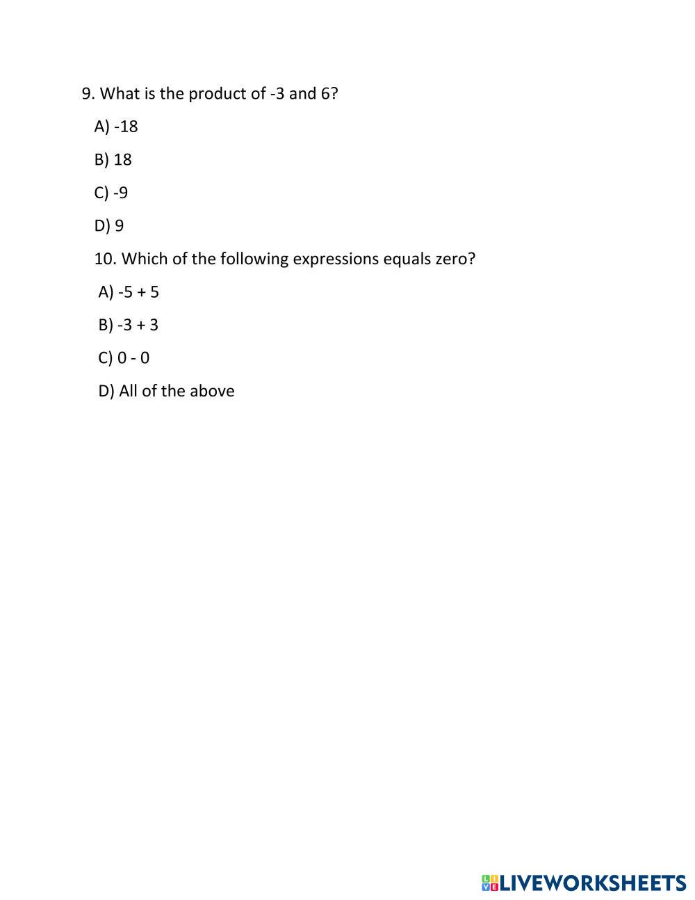 Created byKalaivani Sivan MATHEMATICS Negative Numbers and Integers Age 7-18 level: LEVEL 1 English Author's Instructions My Google Classroom Courses × 0 classes selected (0 students total) Quick Access Select all classes (0 classes) All Classes Loading courses... Cancel Share Share to selected Course __COURSE_NAME__ __STUDENT_NAME__ (__STUDENT_EMAIL__) CODINGAL Download Worksheet Validation Check my answers Emails my answers to my teacher Full name Group/level School subject Teacher's email or key code Close Submit Validating worksheet... (12) Your answers have been sent to your teacher. Good luck! OK We encountered an error submitting your answers. Please try again. OK Advertisement | Go Ad Free Created byKalaivani Sivan MATHEMATICS Negative Numbers and Integers Age 7-18 level: LEVEL 1 English Author's Instructions