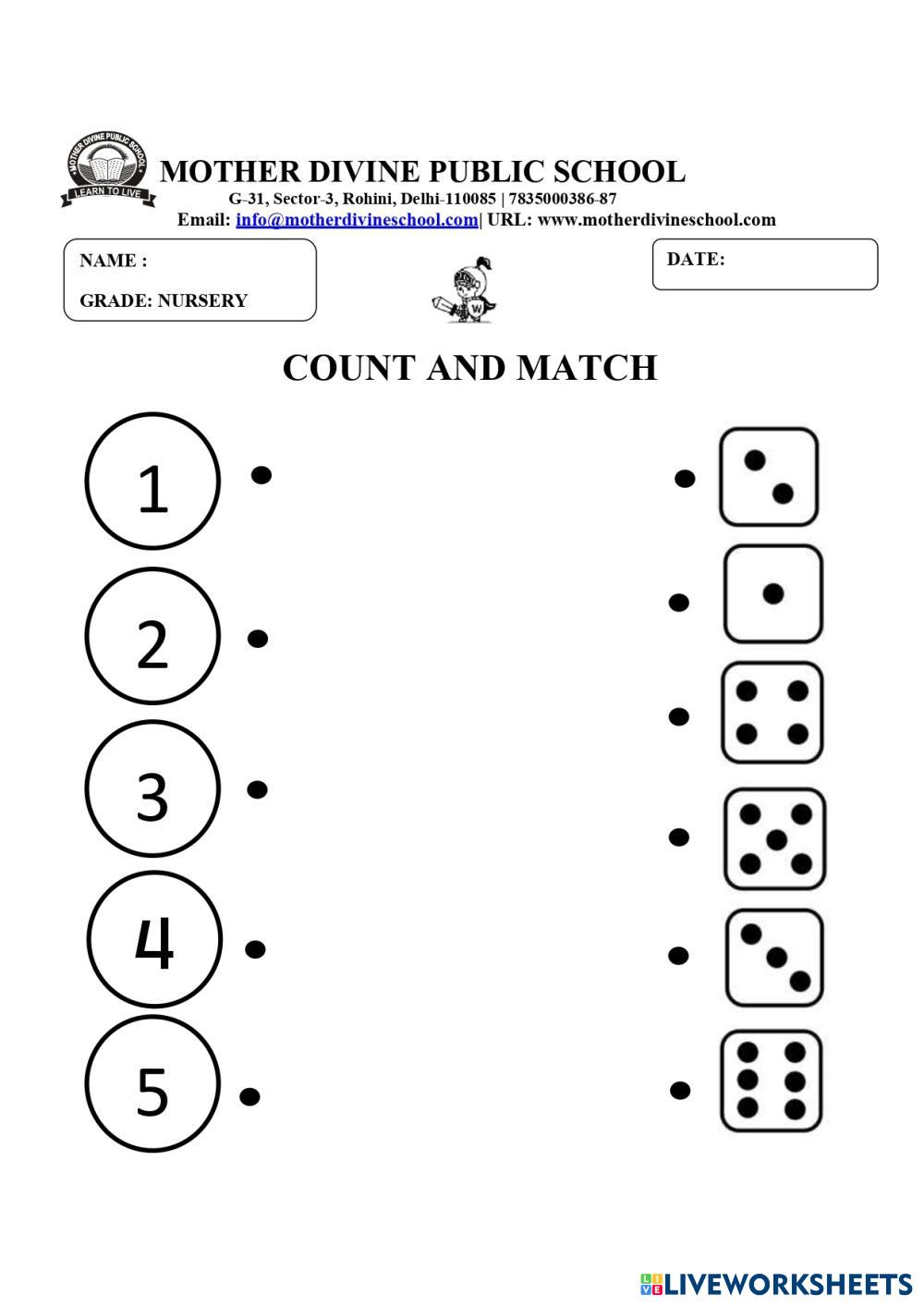 Created byUNTOO MATHEMATICS COUNTING 1-5 Age 3-7 level: NURSERY English Author's Instructions My Google Classroom Courses × 0 classes selected (0 students total) Quick Access Select all classes (0 classes) All Classes Loading courses... Cancel Share Share to selected Course __COURSE_NAME__ __STUDENT_NAME__ (__STUDENT_EMAIL__) MATHS Download Worksheet Validation Check my answers Emails my answers to my teacher Full name Group/level School subject Teacher's email or key code Close Submit Validating worksheet... (12) Your answers have been sent to your teacher. Good luck! OK We encountered an error submitting your answers. Please try again. OK Advertisement | Go Ad Free Created byUNTOO MATHEMATICS COUNTING 1-5 Age 3-7 level: NURSERY English Author's Instructions
