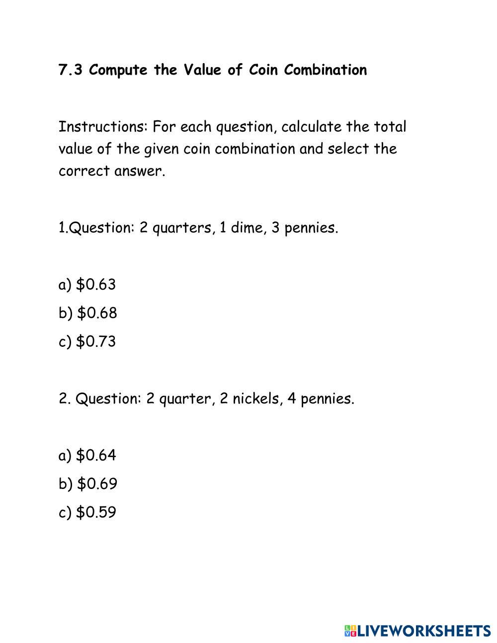 Compute the Value of Coin Combination