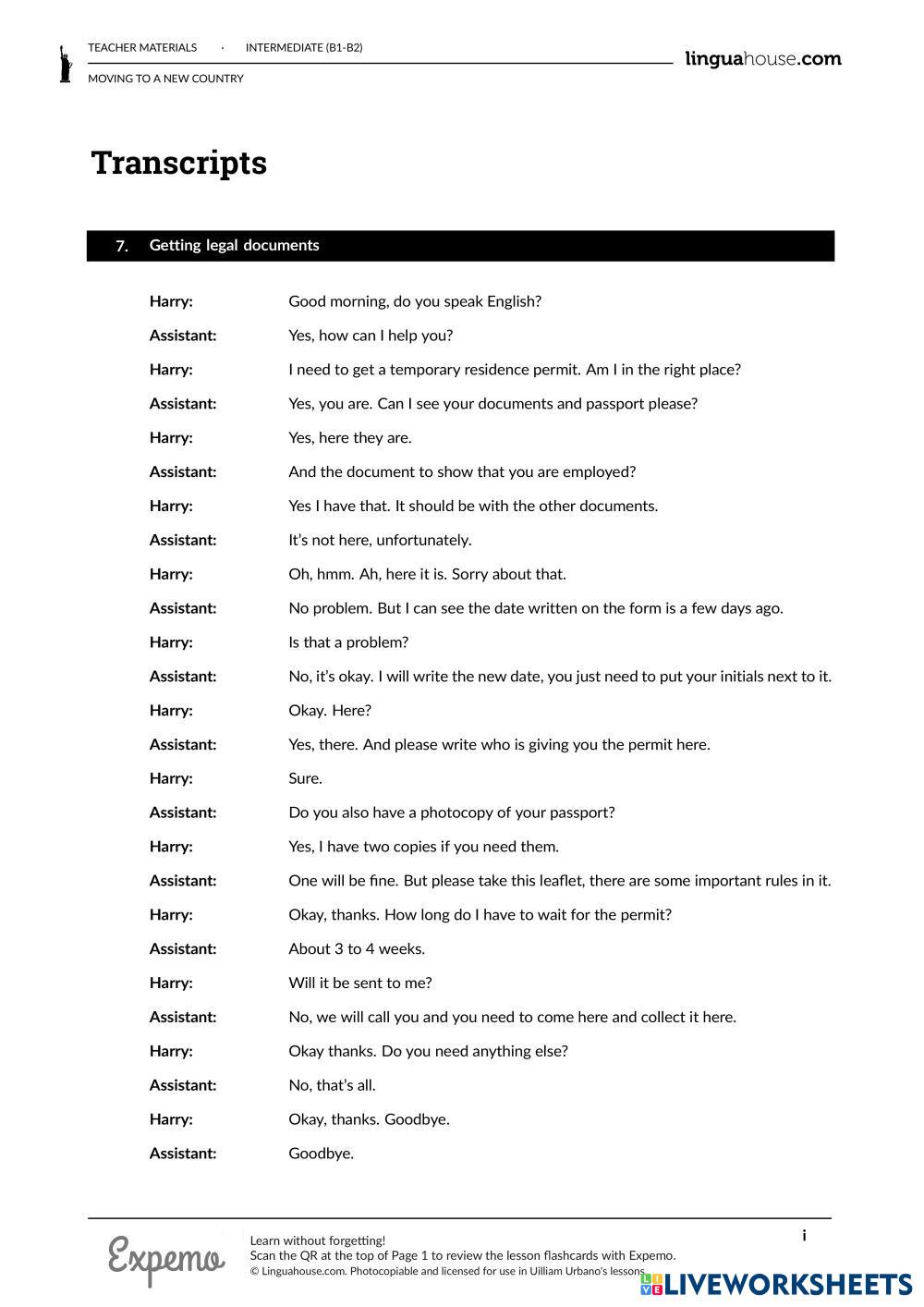 Created byUilliam Urbano Silva Ferreira moving to a new country changes Age 17+ level: b1 English Author's Instructions My Google Classroom Courses × 0 classes selected (0 students total) Quick Access Select all classes (0 classes) All Classes Loading courses... Cancel Share Share to selected Course __COURSE_NAME__ __STUDENT_NAME__ (__STUDENT_EMAIL__) moving to a new country Download Worksheet Validation Check my answers Emails my answers to my teacher Full name Group/level School subject Teacher's email or key code Close Submit Validating worksheet... (12) Your answers have been sent to your teacher. Good luck! OK We encountered an error submitting your answers. Please try again. OK Advertisement | Go Ad Free Created byUilliam Urbano Silva Ferreira moving to a new country changes Age 17+ level: b1 English Author's Instructions