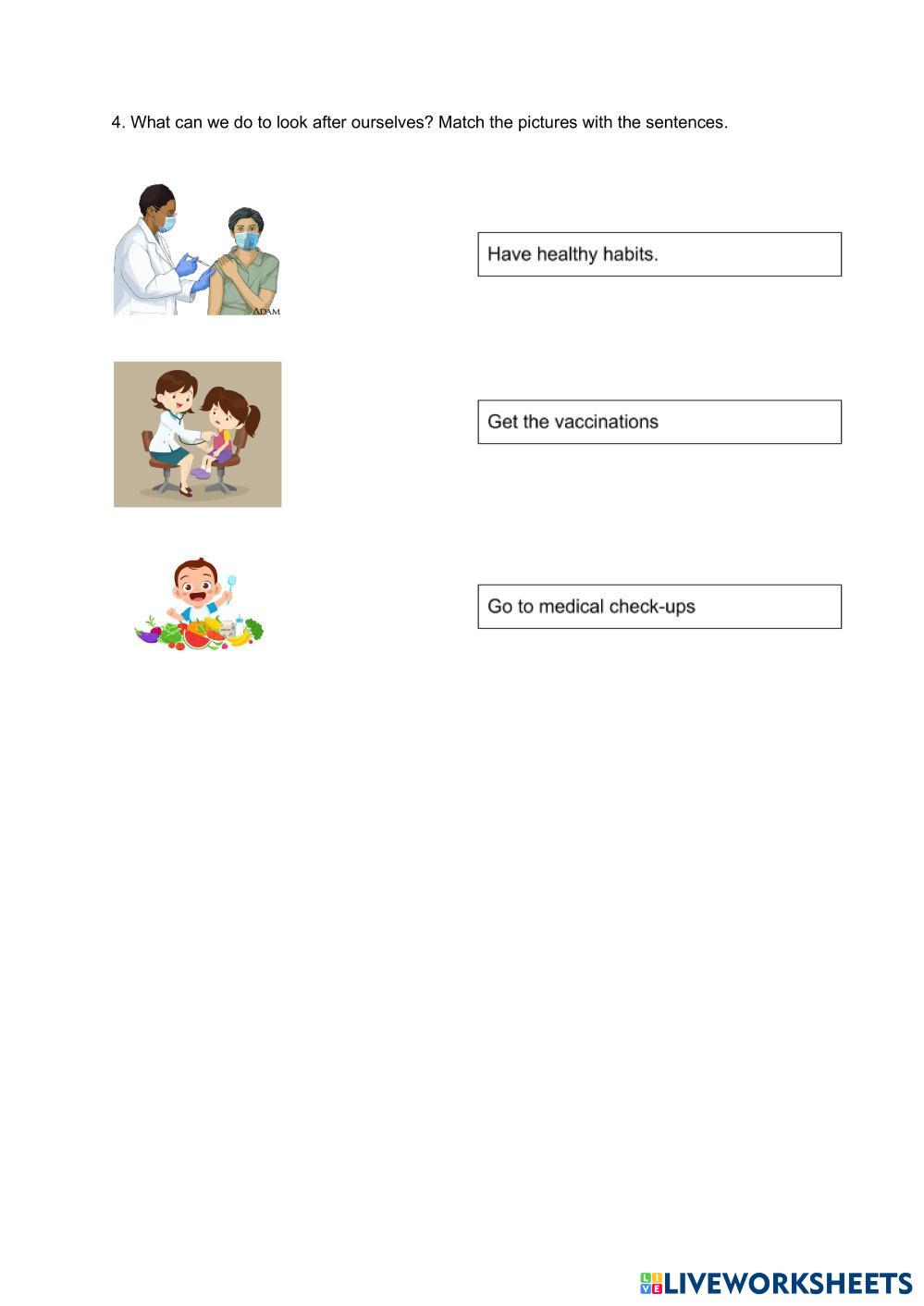 worksheet to work different concepts related to health