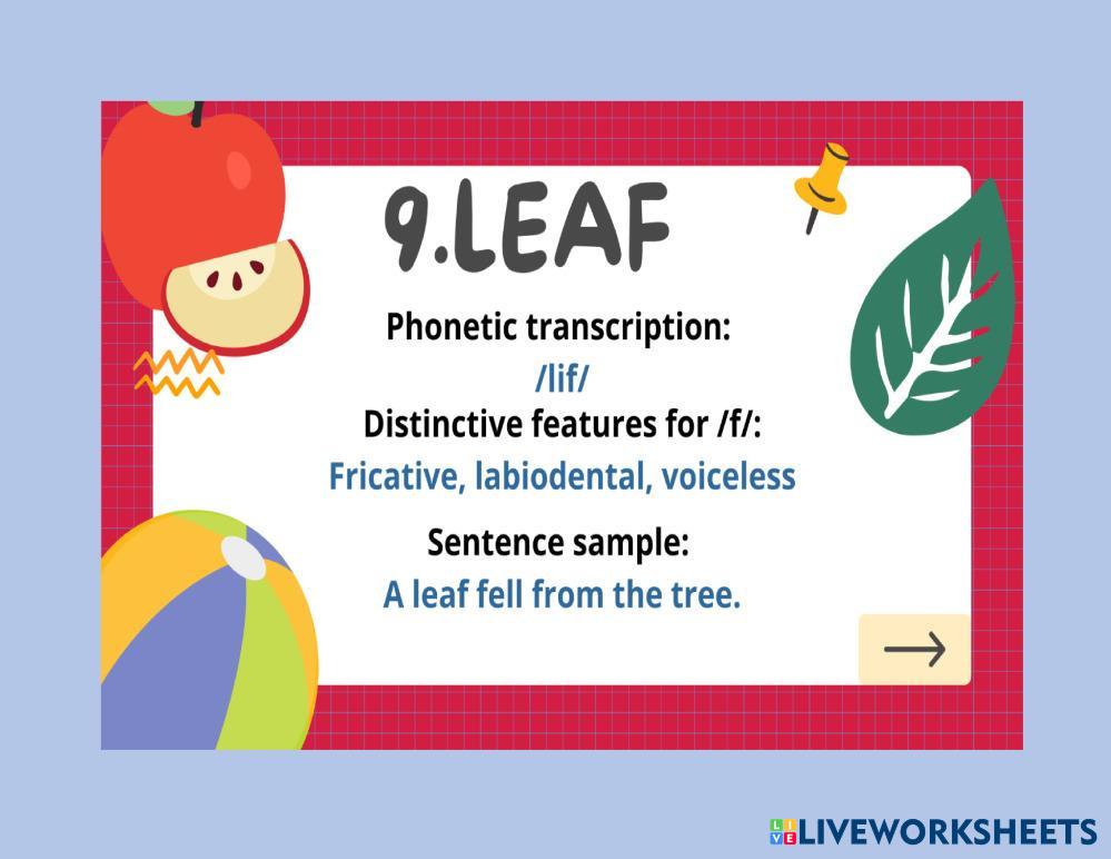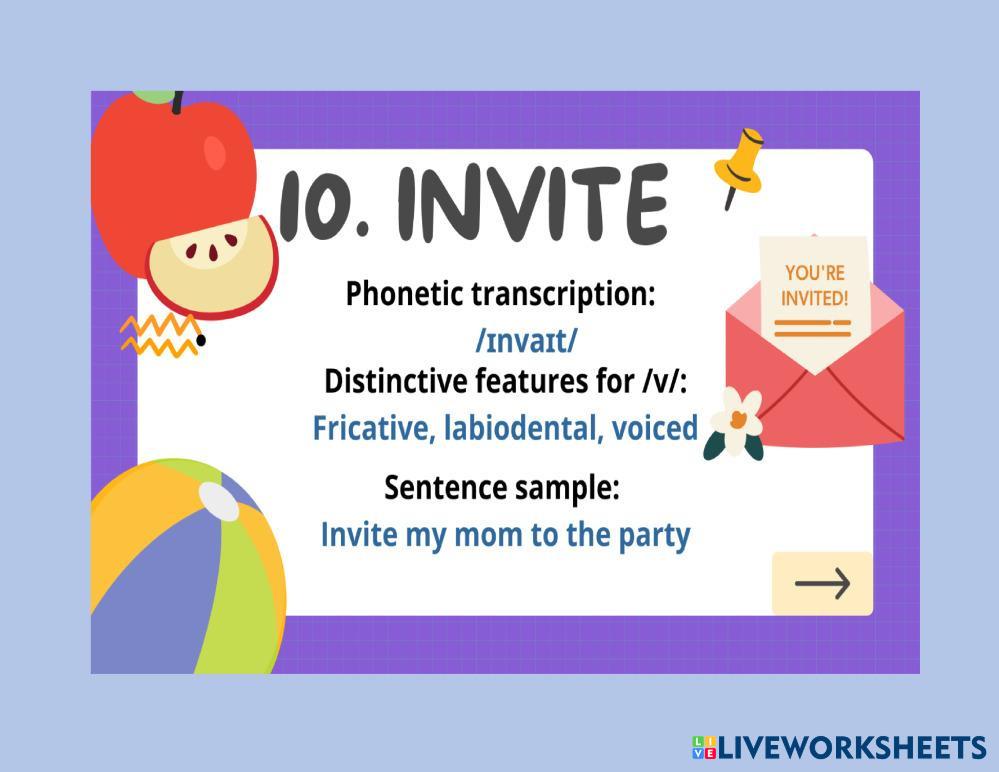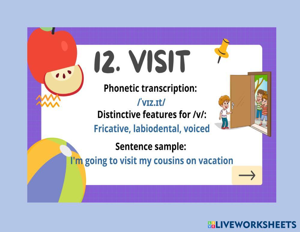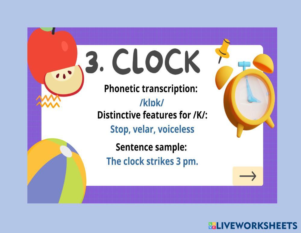 Created byJavier Ernesto Deras phonetics Pronunciation Age 3+ level: B1 English Author's Instructions My Google Classroom Courses × 0 classes selected (0 students total) Quick Access Select all classes (0 classes) All Classes Loading courses... Cancel Share Share to selected Course __COURSE_NAME__ __STUDENT_NAME__ (__STUDENT_EMAIL__) AUDIO FLASHCARDS Download Worksheet Validation Check my answers Emails my answers to my teacher Full name Group/level School subject Teacher's email or key code Close Submit Validating worksheet... (12) Your answers have been sent to your teacher. Good luck! OK We encountered an error submitting your answers. Please try again. OK Advertisement | Go Ad Free Created byJavier Ernesto Deras phonetics Pronunciation Age 3+ level: B1 English Author's Instructions