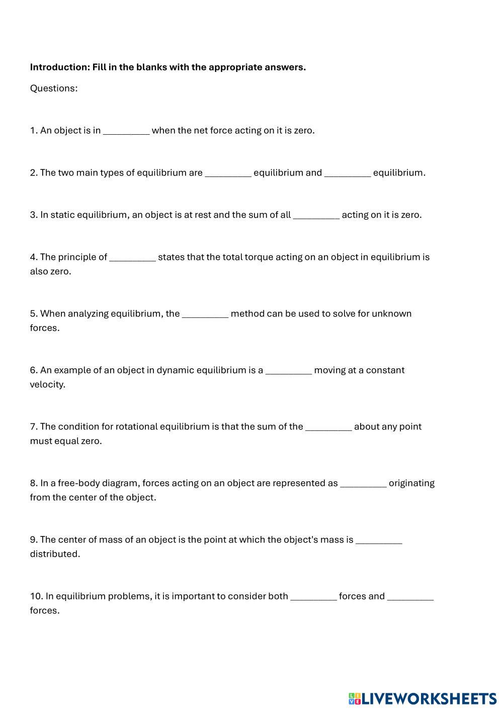 Created byArfidzul Rajit Noor Physical Science Force Age 18+ level: High Education English Author's Instructions My Google Classroom Courses × 0 classes selected (0 students total) Quick Access Select all classes (0 classes) All Classes Loading courses... Cancel Share Share to selected Course __COURSE_NAME__ __STUDENT_NAME__ (__STUDENT_EMAIL__) Exercise 2 Download Worksheet Validation Check my answers Emails my answers to my teacher Full name Group/level School subject Teacher's email or key code Close Submit Validating worksheet... (12) Your answers have been sent to your teacher. Good luck! OK We encountered an error submitting your answers. Please try again. OK Advertisement | Go Ad Free Created byArfidzul Rajit Noor Physical Science Force Age 18+ level: High Education English Author's Instructions