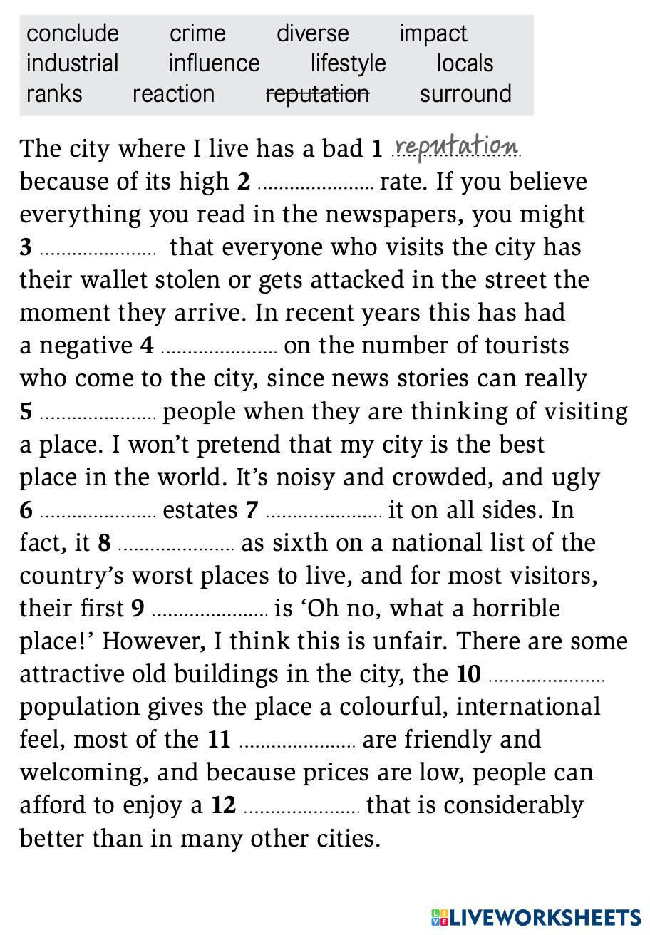 Created byAnh Duc Pham Places Vocabulary Age 8+ level: B1 English Author's Instructions My Google Classroom Courses × 0 classes selected (0 students total) Quick Access Select all classes (0 classes) All Classes Loading courses... Cancel Share Share to selected Course __COURSE_NAME__ __STUDENT_NAME__ (__STUDENT_EMAIL__) Unit 1 - Exercise 6 Download Worksheet Validation Check my answers Emails my answers to my teacher Full name Group/level School subject Teacher's email or key code Close Submit Validating worksheet... (12) Your answers have been sent to your teacher. Good luck! OK We encountered an error submitting your answers. Please try again. OK Advertisement | Go Ad Free Created byAnh Duc Pham Places Vocabulary Age 8+ level: B1 English Author's Instructions