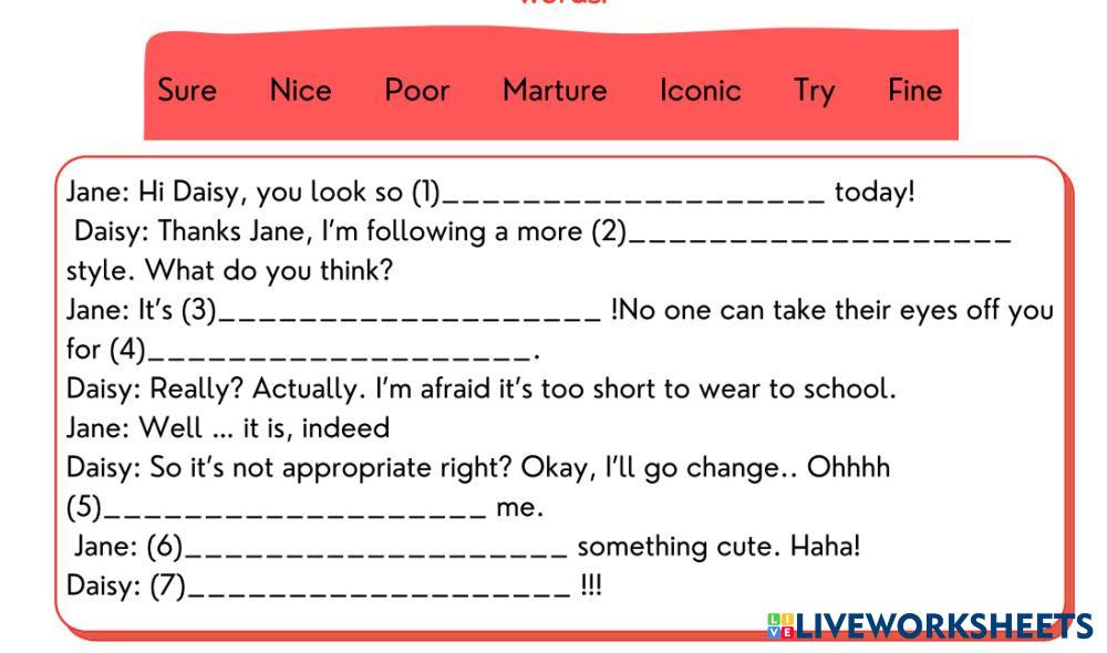 Created by DYNAMICCAMHW003 Pronunciation Remind Homework Age 18+ level: a1 English Author's Instructions Fill in the Blanks My Google Classroom Courses × 0 classes selected (0 students total) Quick Access Select all classes (0 classes) All Classes Loading courses... Cancel Share Share to selected Course __COURSE_NAME__ __STUDENT_NAME__ (__STUDENT_EMAIL__) Fill in the Blanks Download Worksheet Validation Check my answers Emails my answers to my teacher Full name Group/level School subject Teacher's email or key code Close Submit Validating worksheet... (12) Your answers have been sent to your teacher. Good luck! OK We encountered an error submitting your answers. Please try again. OK Advertisement | Go Ad Free Created by DYNAMICCAMHW003 Pronunciation Remind Homework Age 18+ level: a1 English Author's Instructions Fill in the Blanks