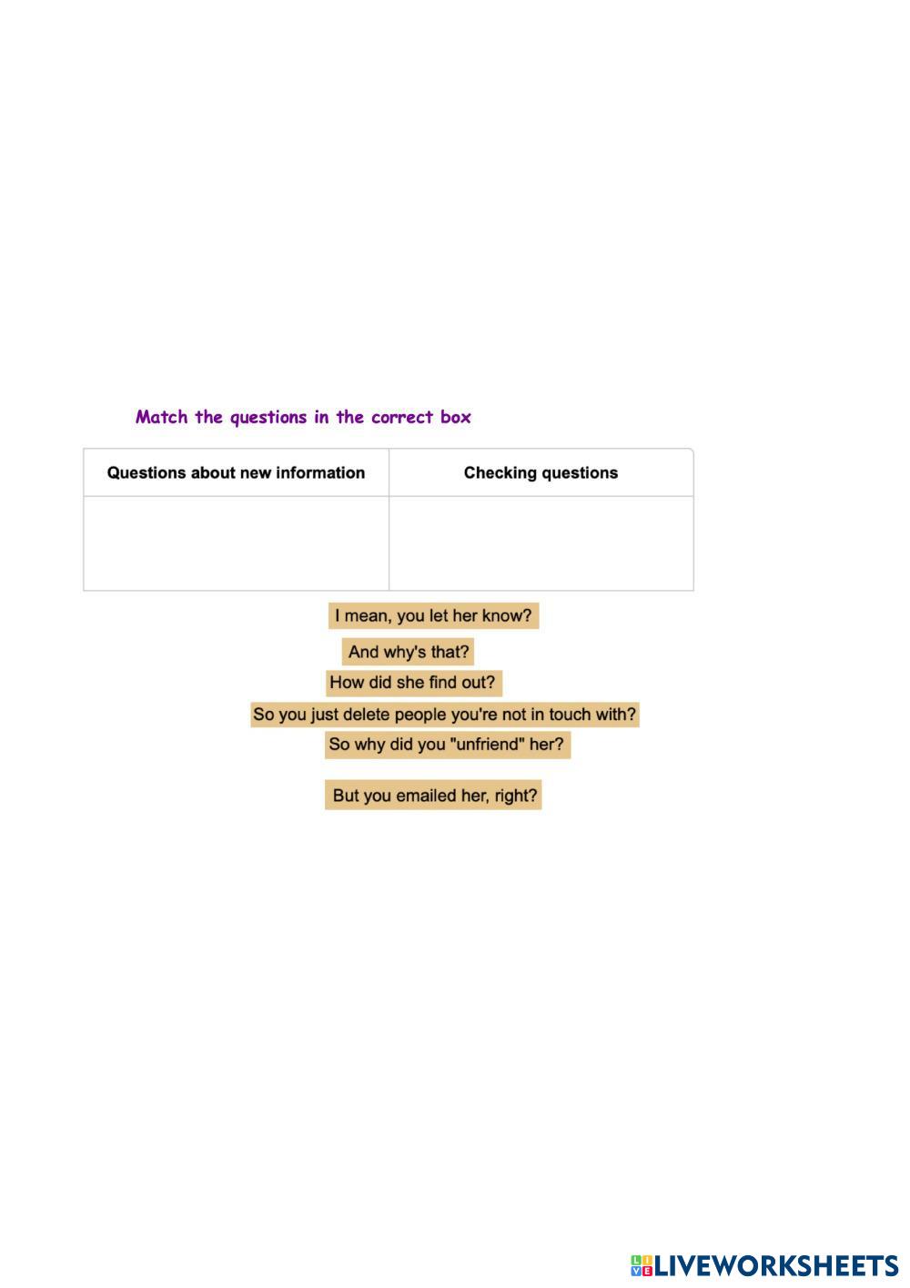 Created byKaren Gabriela Sagastume Morales questions Questions Age 10-7 level: 3 English Author's Instructions Read and complete your own questions with the use of and , so, or but. My Google Classroom Courses × 0 classes selected (0 students total) Quick Access Select all classes (0 classes) All Classes Loading courses... Cancel Share Share to selected Course __COURSE_NAME__ __STUDENT_NAME__ (__STUDENT_EMAIL__) Checking meaning questions with prepositions Download Worksheet Validation Check my answers Emails my answers to my teacher Full name Group/level School subject Teacher's email or key code Close Submit Validating worksheet... (12) Your answers have been sent to your teacher. Good luck! OK We encountered an error submitting your answers. Please try again. OK Advertisement | Go Ad Free Created byKaren Gabriela Sagastume Morales questions Questions Age 10-7 level: 3 English Author's Instructions Read and complete your own questions with the use of and , so, or but.