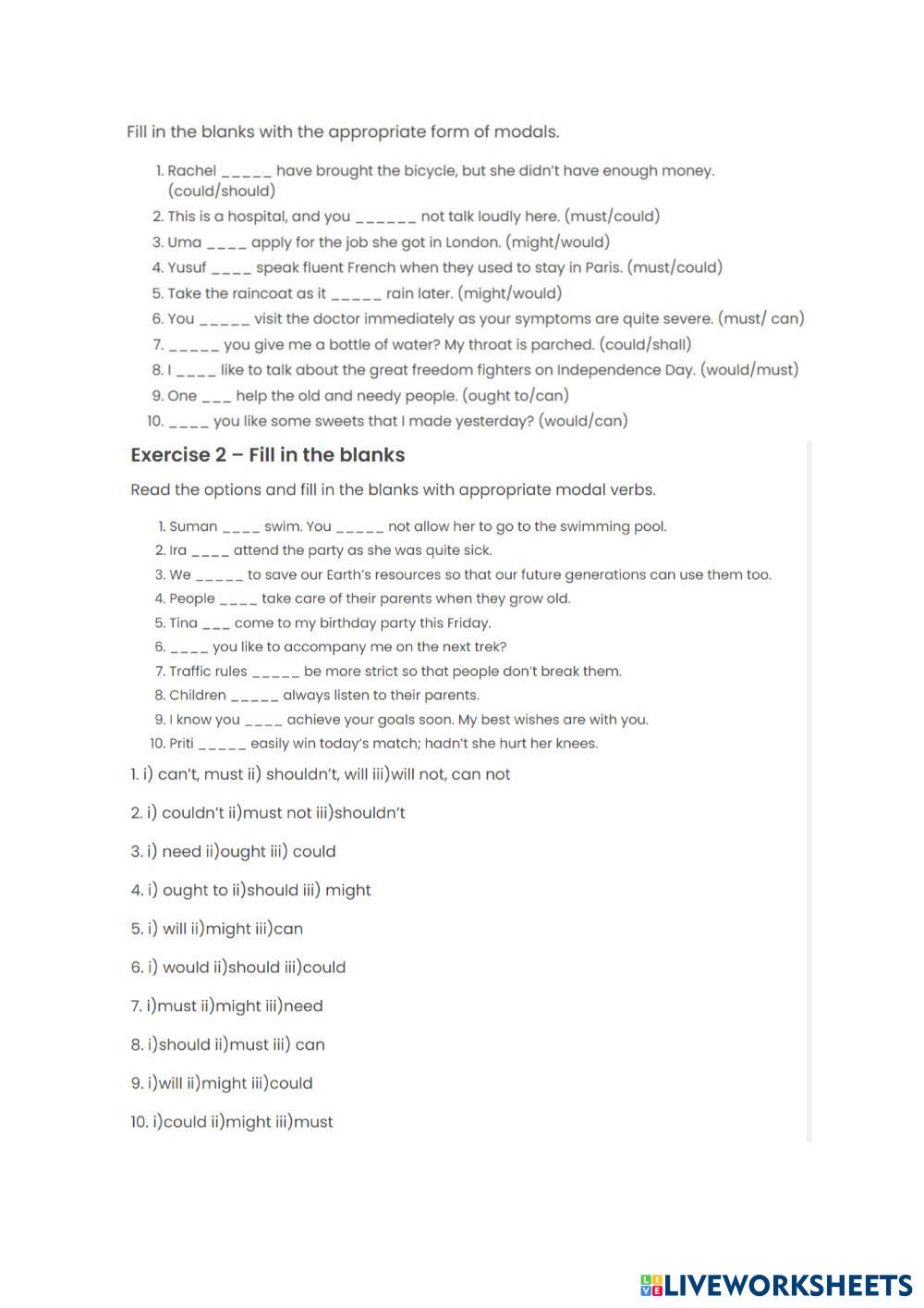 Created byГанина Софья Максимовна Russian as Foreign Language modal verbs Age 14+ level: 5 English Author's Instructions My Google Classroom Courses × 0 classes selected (0 students total) Quick Access Select all classes (0 classes) All Classes Loading courses... Cancel Share Share to selected Course __COURSE_NAME__ __STUDENT_NAME__ (__STUDENT_EMAIL__) Modals 10 Download Worksheet Validation Check my answers Emails my answers to my teacher Full name Group/level School subject Teacher's email or key code Close Submit Validating worksheet... (12) Your answers have been sent to your teacher. Good luck! OK We encountered an error submitting your answers. Please try again. OK Advertisement | Go Ad Free Created byГанина Софья Максимовна Russian as Foreign Language modal verbs Age 14+ level: 5 English Author's Instructions