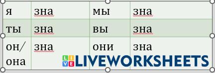 Complete the verb according to the pronouns