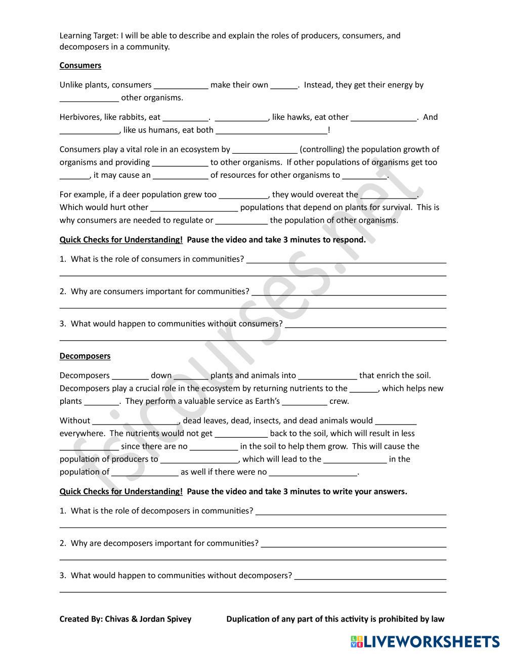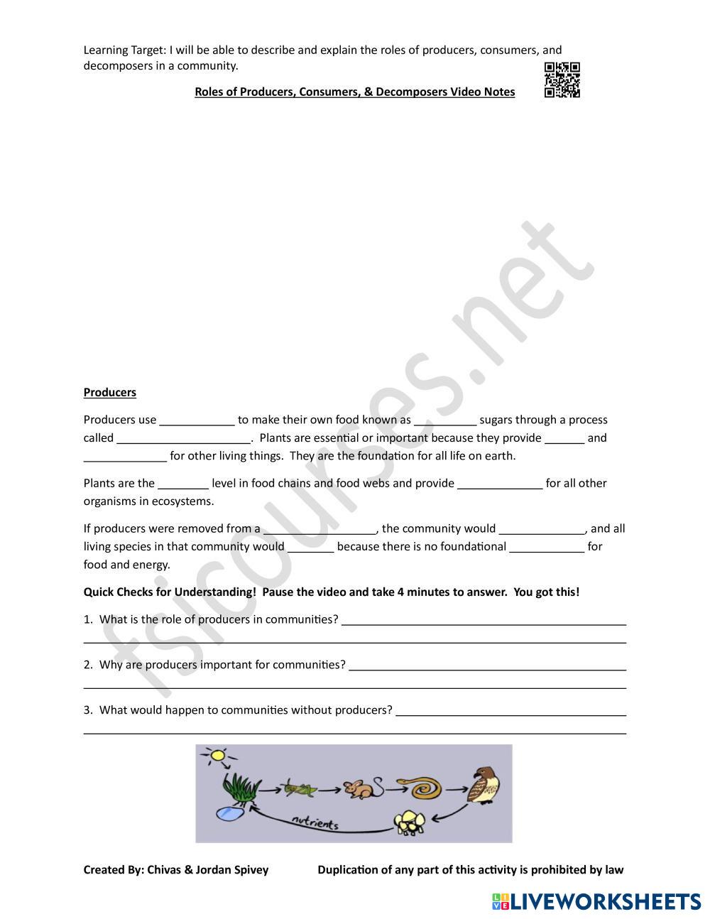 Created byINTJ_Faith7 Science Elementary 4th grade Life Science English Author's Instructions Watch the video to complete your notes. My Google Classroom Courses × 0 classes selected (0 students total) Quick Access Select all classes (0 classes) All Classes Loading courses... Cancel Share Share to selected Course __COURSE_NAME__ __STUDENT_NAME__ (__STUDENT_EMAIL__) Roles of Producers, Consumers, & Decomposers Video Notes Download Worksheet Validation Check my answers Emails my answers to my teacher Full name Group/level School subject Teacher's email or key code Close Submit Validating worksheet... (12) Your answers have been sent to your teacher. Good luck! OK We encountered an error submitting your answers. Please try again. OK Advertisement | Go Ad Free Created byINTJ_Faith7 Science Elementary 4th grade Life Science English Author's Instructions Watch the video to complete your notes. Explore Worksheets Examen UD 5 Science 4th grade Examen UD 5 Life Science - Science Completa el exámen Fossil Fuels Science 4th grade Fossil Fuels Life Science - Science CC Science 4th QE_HSP Science 4th grade Science 4th QE_HSP Life Science - Science Instructions: Read each question carefully. Show your work when needed. Solve each problem step by step. Check your answers before submitting. Do your best and work independently. Reproduction of Non-Flowering Plants Science 4th grade Reproduction of Non-Flowering Plants Life Science - Science Read each question and then answer