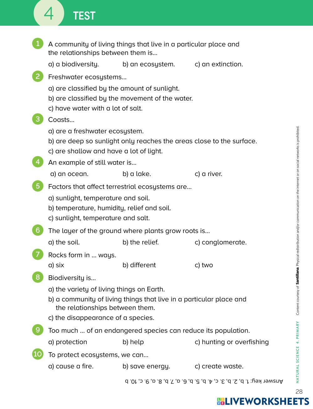 Created by laprofemarta Science Elementary 4th grade Life Science English Author's Instructions Answer the test My Google Classroom Courses × 0 classes selected (0 students total) Quick Access Select all classes (0 classes) All Classes Loading courses... Cancel Share Share to selected Course __COURSE_NAME__ __STUDENT_NAME__ (__STUDENT_EMAIL__) Ecosystems Download Worksheet Validation Check my answers Emails my answers to my teacher Full name Group/level School subject Teacher's email or key code Close Submit Validating worksheet... (12) Your answers have been sent to your teacher. Good luck! OK We encountered an error submitting your answers. Please try again. OK Advertisement | Go Ad Free Created by laprofemarta Science Elementary 4th grade Life Science English Author's Instructions Answer the test Explore Worksheets Transferencia Semana 7-8- Reinos de la Naturaleza Science 4th grade Transferencia Semana 7-8- Reinos de la Naturaleza Life Science - Science Resuelve las actividades propuestas. LWS cono 4_3 Science 4th grade LWS cono 4_3 Life Science - Science LWS cono 4_3 ورقة عمل الانقراض Science 4th grade ورقة عمل الانقراض Life Science - Science - ورقة عمل الانقراض Science 4th grade ورقة عمل الانقراض Life Science - Science -