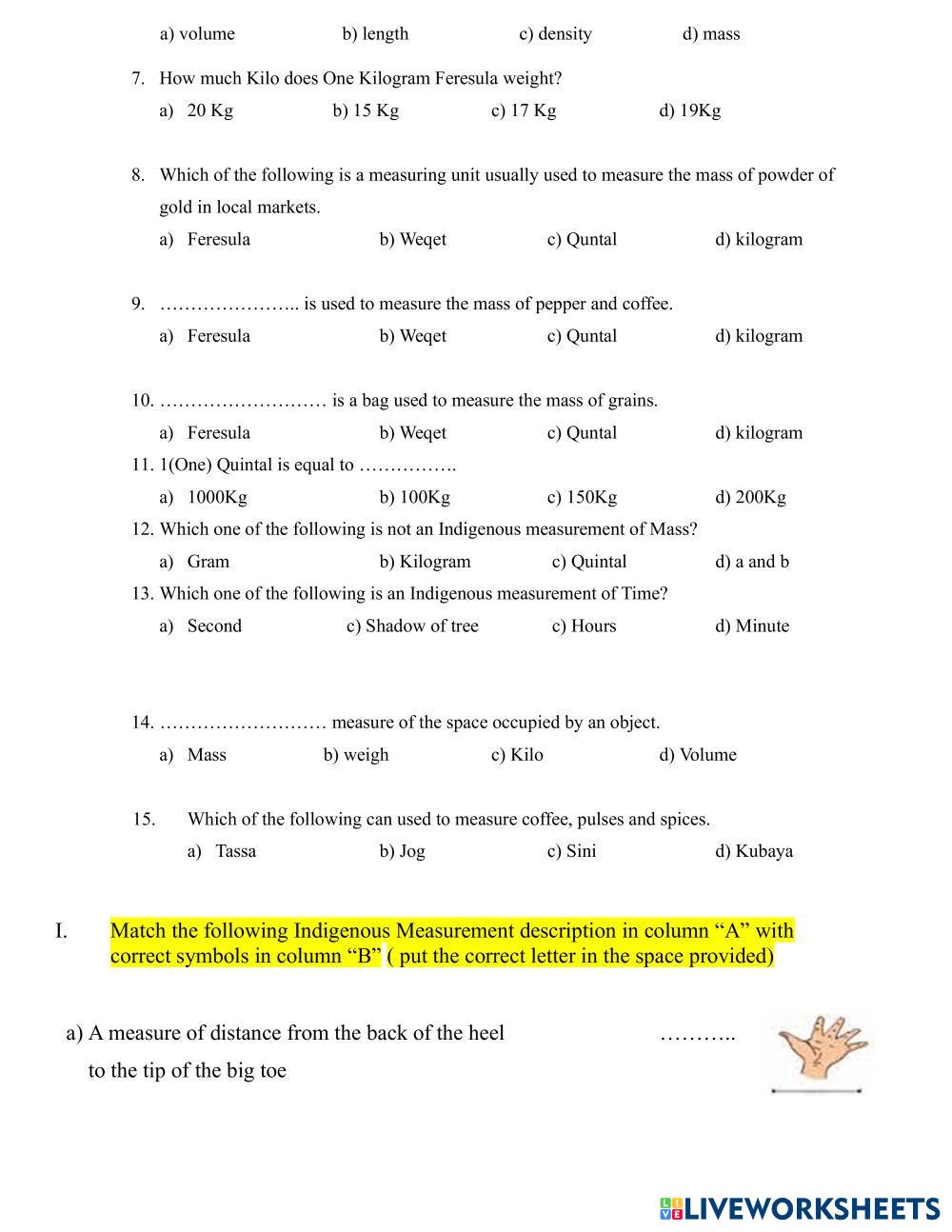 G8 General Science Unit One scientific and indigenous measurements worksheet twoDoing scientific investigation