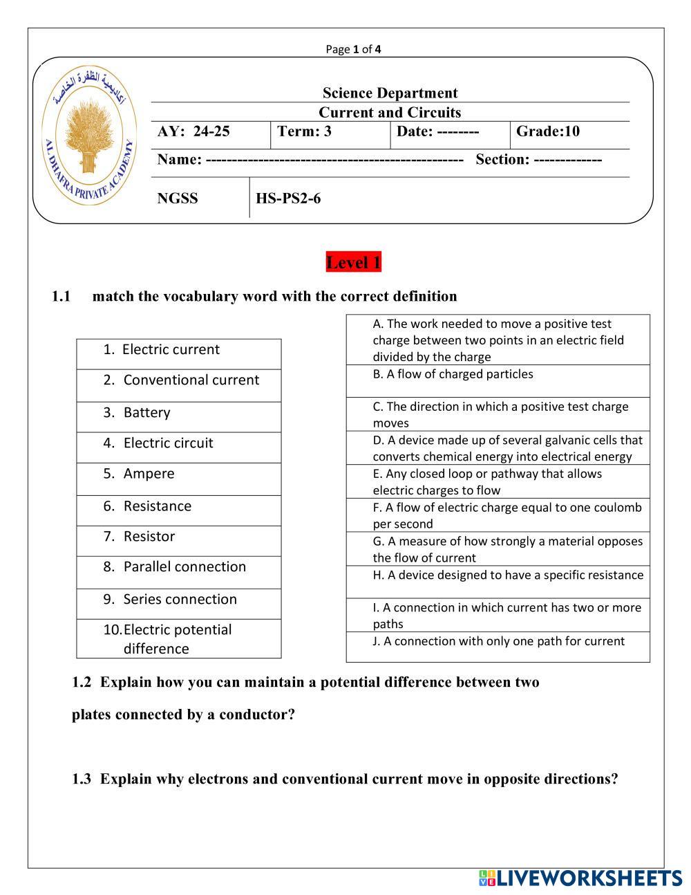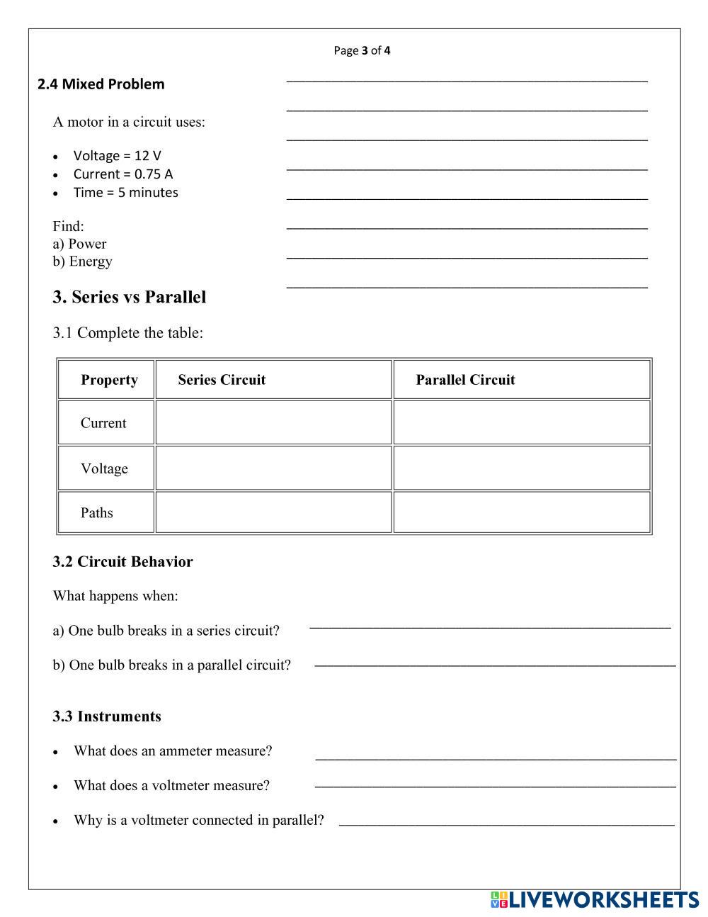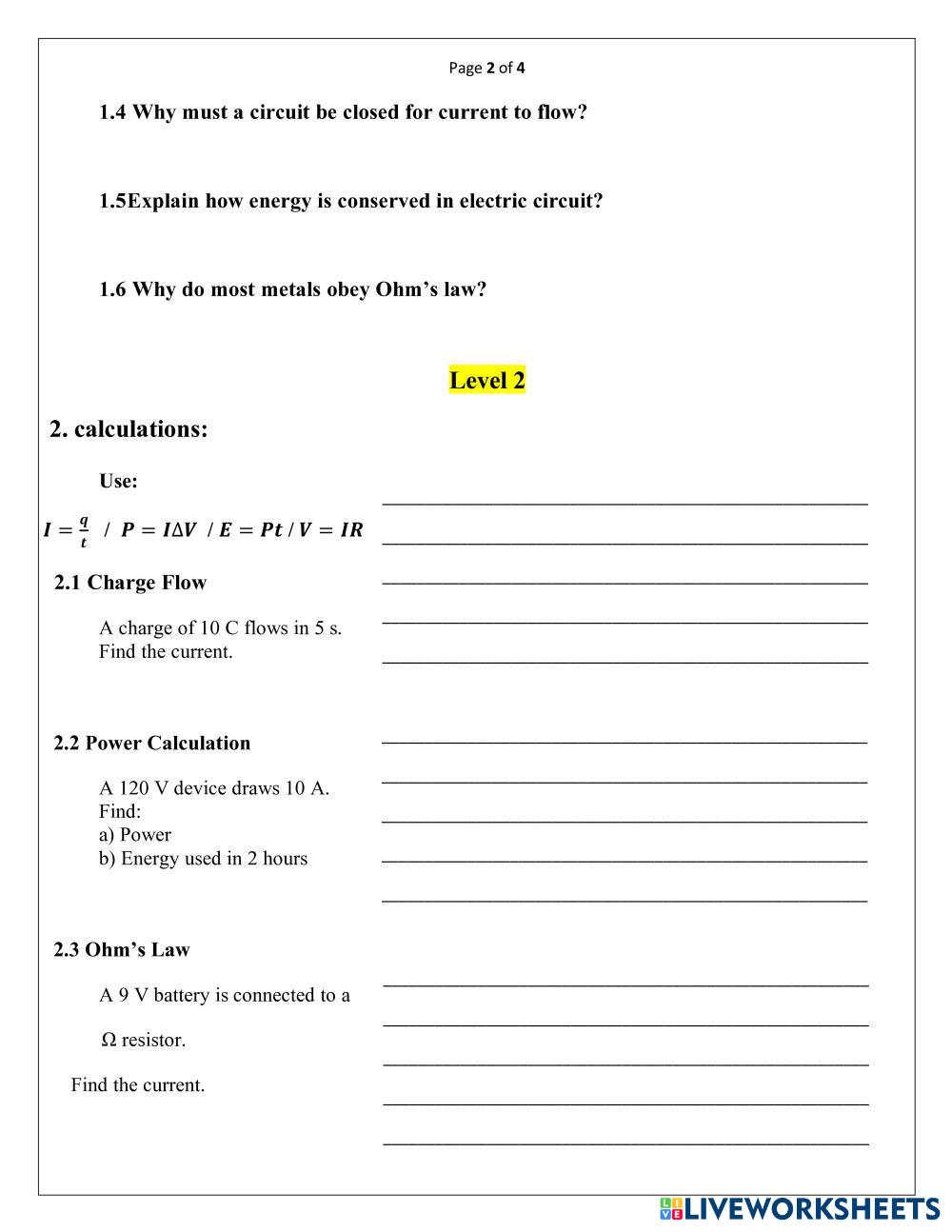 - Use correct units (A, V, Ω, W, J) in all numerical answers.