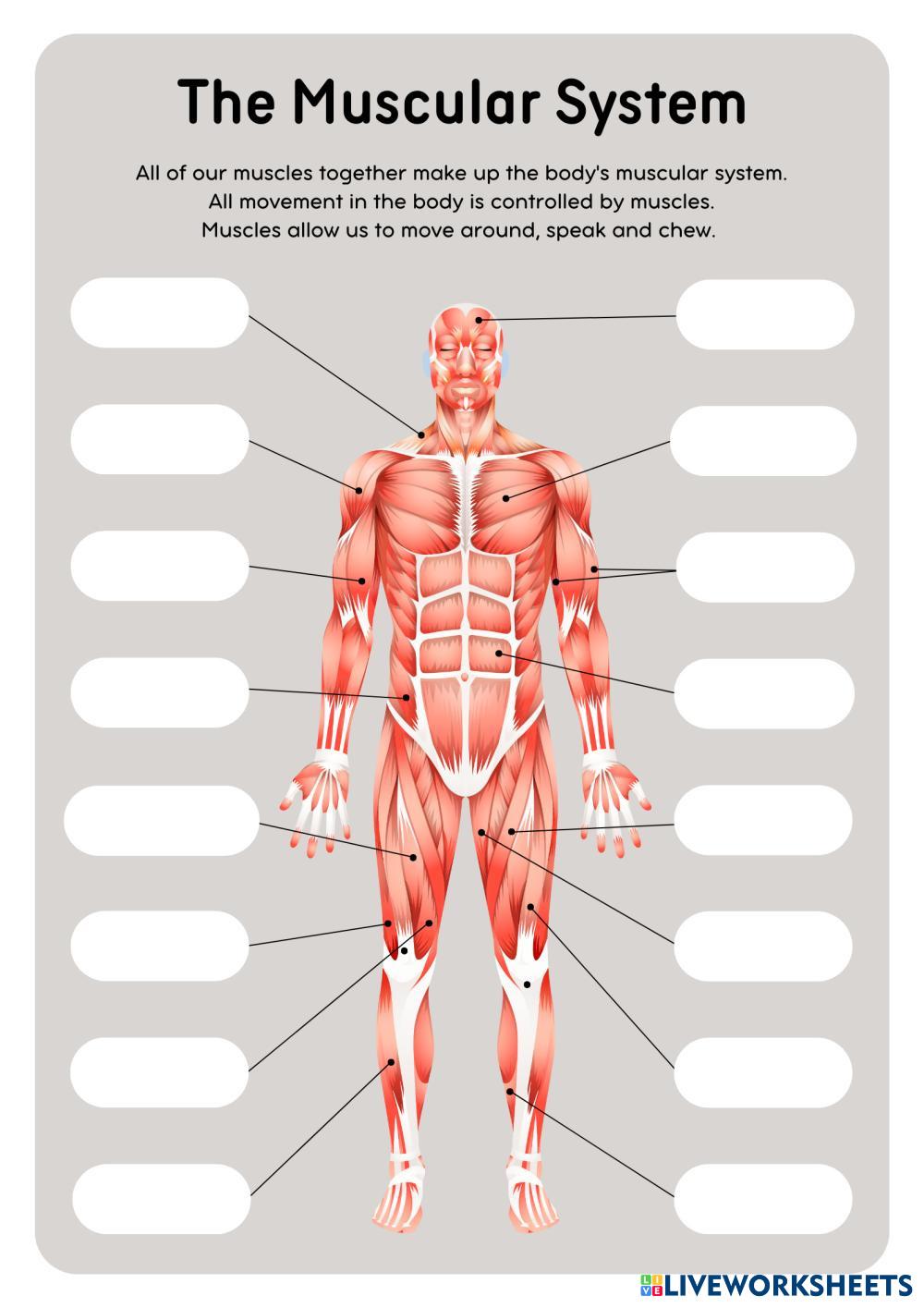Created byDavid Gonzales Science Muscular System Age 6-10 level: 1 English Author's Instructions My Google Classroom Courses × 0 classes selected (0 students total) Quick Access Select all classes (0 classes) All Classes Loading courses... Cancel Share Share to selected Course __COURSE_NAME__ __STUDENT_NAME__ (__STUDENT_EMAIL__) The Muscular System Download Worksheet Validation Check my answers Emails my answers to my teacher Full name Group/level School subject Teacher's email or key code Close Submit Validating worksheet... (12) Your answers have been sent to your teacher. Good luck! OK We encountered an error submitting your answers. Please try again. OK Advertisement | Go Ad Free Created byDavid Gonzales Science Muscular System Age 6-10 level: 1 English Author's Instructions