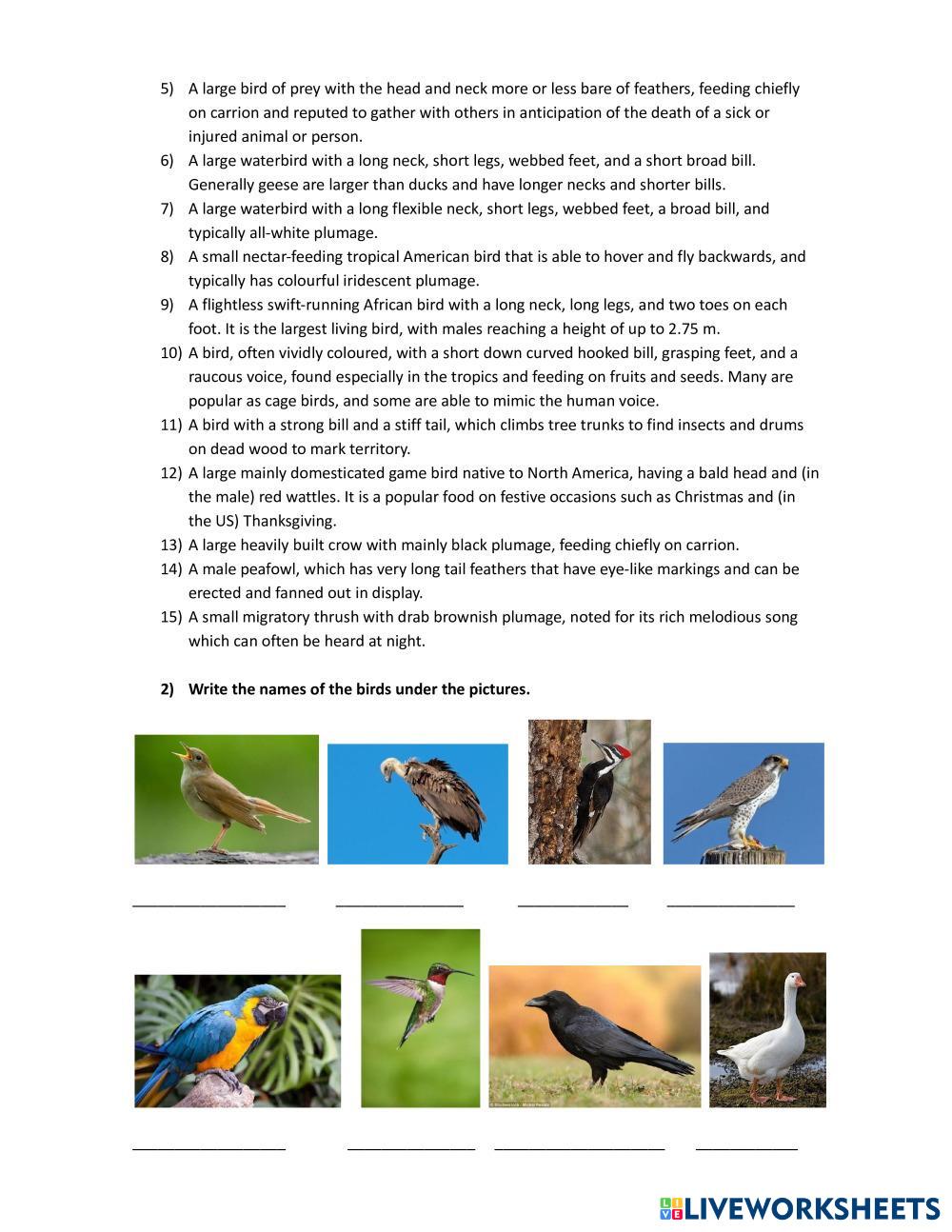 Created byLisandra Science Birds Age 14+ level: intermediate English Author's Instructions My Google Classroom Courses × 0 classes selected (0 students total) Quick Access Select all classes (0 classes) All Classes Loading courses... Cancel Share Share to selected Course __COURSE_NAME__ __STUDENT_NAME__ (__STUDENT_EMAIL__) Science Download Worksheet Validation Check my answers Emails my answers to my teacher Full name Group/level School subject Teacher's email or key code Close Submit Validating worksheet... (12) Your answers have been sent to your teacher. Good luck! OK We encountered an error submitting your answers. Please try again. OK Advertisement | Go Ad Free Created byLisandra Science Birds Age 14+ level: intermediate English Author's Instructions