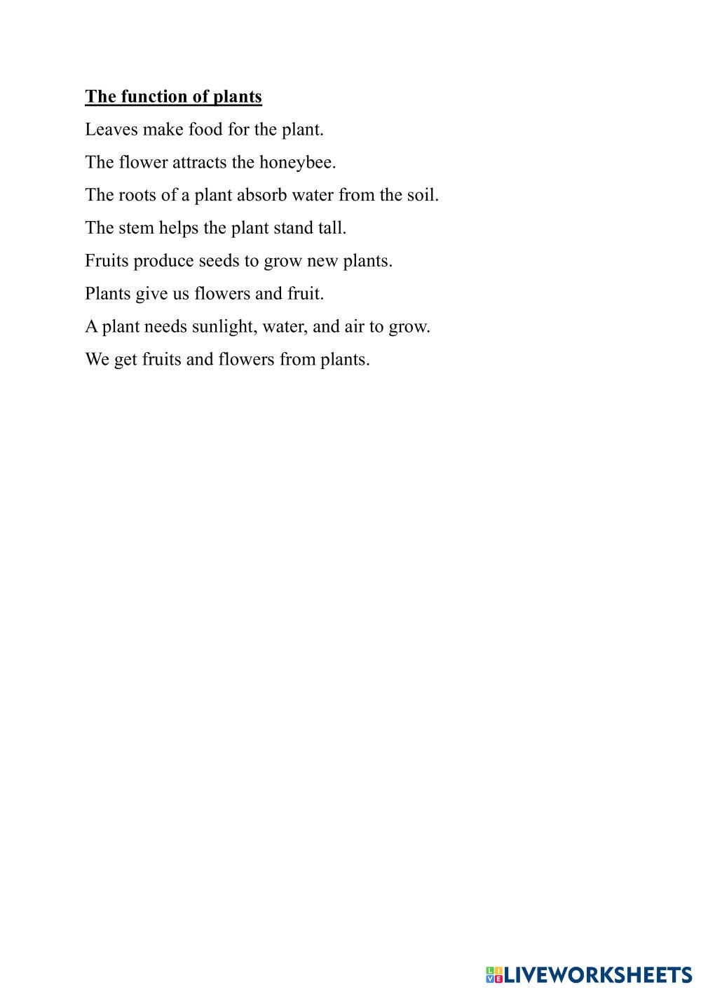 Parts of the plant functions