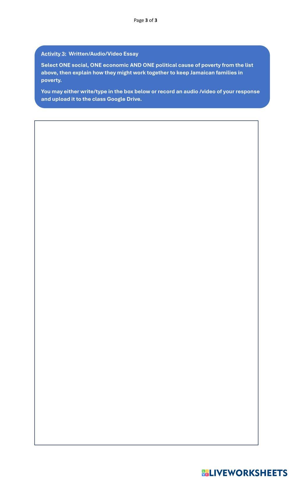 - Classifying the examples of causes of poverty into social, economic and political by selecting from the drop-down box