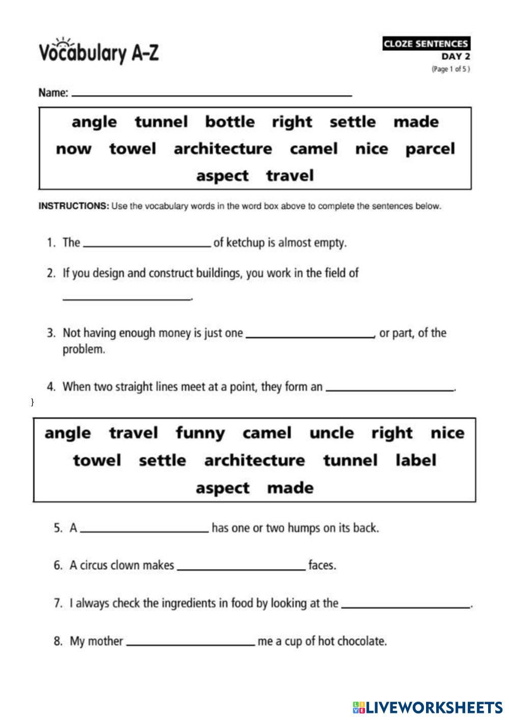Created byGina Steccone Spelling Spelling Age 8+ level: 4G English Author's Instructions My Google Classroom Courses × 0 classes selected (0 students total) Quick Access Select all classes (0 classes) All Classes Loading courses... Cancel Share Share to selected Course __COURSE_NAME__ __STUDENT_NAME__ (__STUDENT_EMAIL__) Cloze sentences Download Worksheet Validation Check my answers Emails my answers to my teacher Full name Group/level School subject Teacher's email or key code Close Submit Validating worksheet... (12) Your answers have been sent to your teacher. Good luck! OK We encountered an error submitting your answers. Please try again. OK Advertisement | Go Ad Free Created byGina Steccone Spelling Spelling Age 8+ level: 4G English Author's Instructions