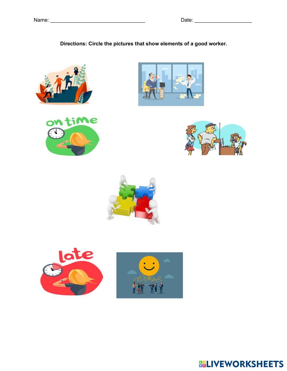 Created byCatherine Warren Study Skills Study Skills Age 10+ level: K-3 English Author's Instructions My Google Classroom Courses × 0 classes selected (0 students total) Quick Access Select all classes (0 classes) All Classes Loading courses... Cancel Share Share to selected Course __COURSE_NAME__ __STUDENT_NAME__ (__STUDENT_EMAIL__) Elements of a Good Worker Download Worksheet Validation Check my answers Emails my answers to my teacher Full name Group/level School subject Teacher's email or key code Close Submit Validating worksheet... (12) Your answers have been sent to your teacher. Good luck! OK We encountered an error submitting your answers. Please try again. OK Advertisement | Go Ad Free Created byCatherine Warren Study Skills Study Skills Age 10+ level: K-3 English Author's Instructions