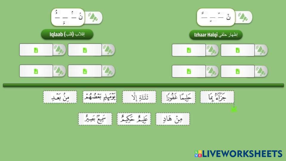 Created byEsraa Tajwid Tajwid T6 Age 10+ level: 1 English Author's Instructions My Google Classroom Courses × 0 classes selected (0 students total) Quick Access Select all classes (0 classes) All Classes Loading courses... Cancel Share Share to selected Course __COURSE_NAME__ __STUDENT_NAME__ (__STUDENT_EMAIL__) Tajweed 1 Download Worksheet Validation Check my answers Emails my answers to my teacher Full name Group/level School subject Teacher's email or key code Close Submit Validating worksheet... (12) Your answers have been sent to your teacher. Good luck! OK We encountered an error submitting your answers. Please try again. OK Advertisement | Go Ad Free Created byEsraa Tajwid Tajwid T6 Age 10+ level: 1 English Author's Instructions