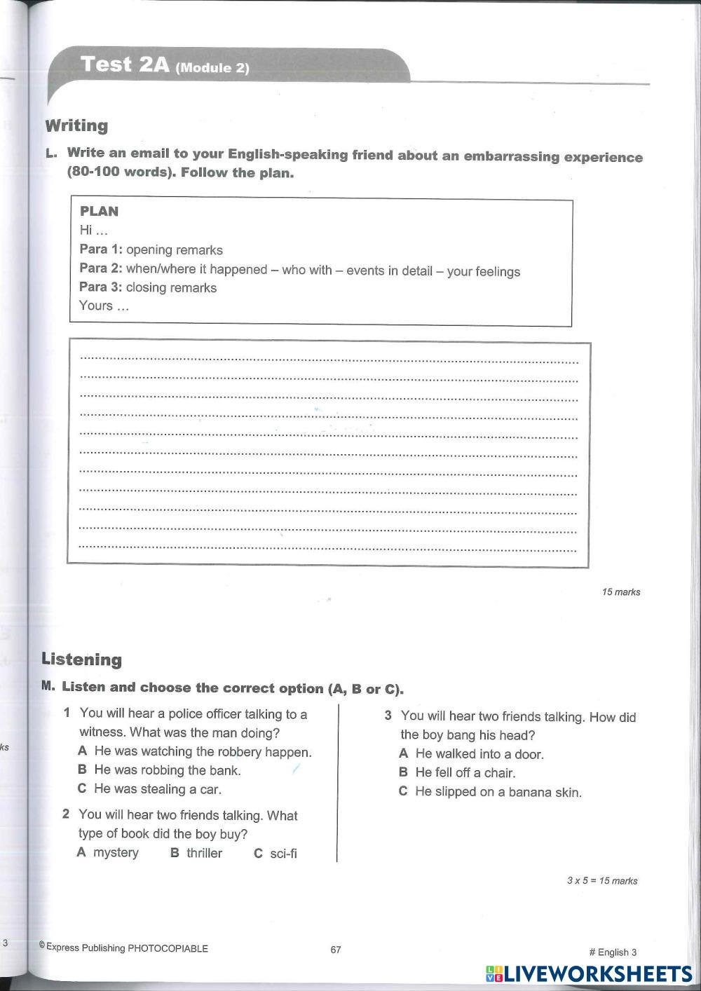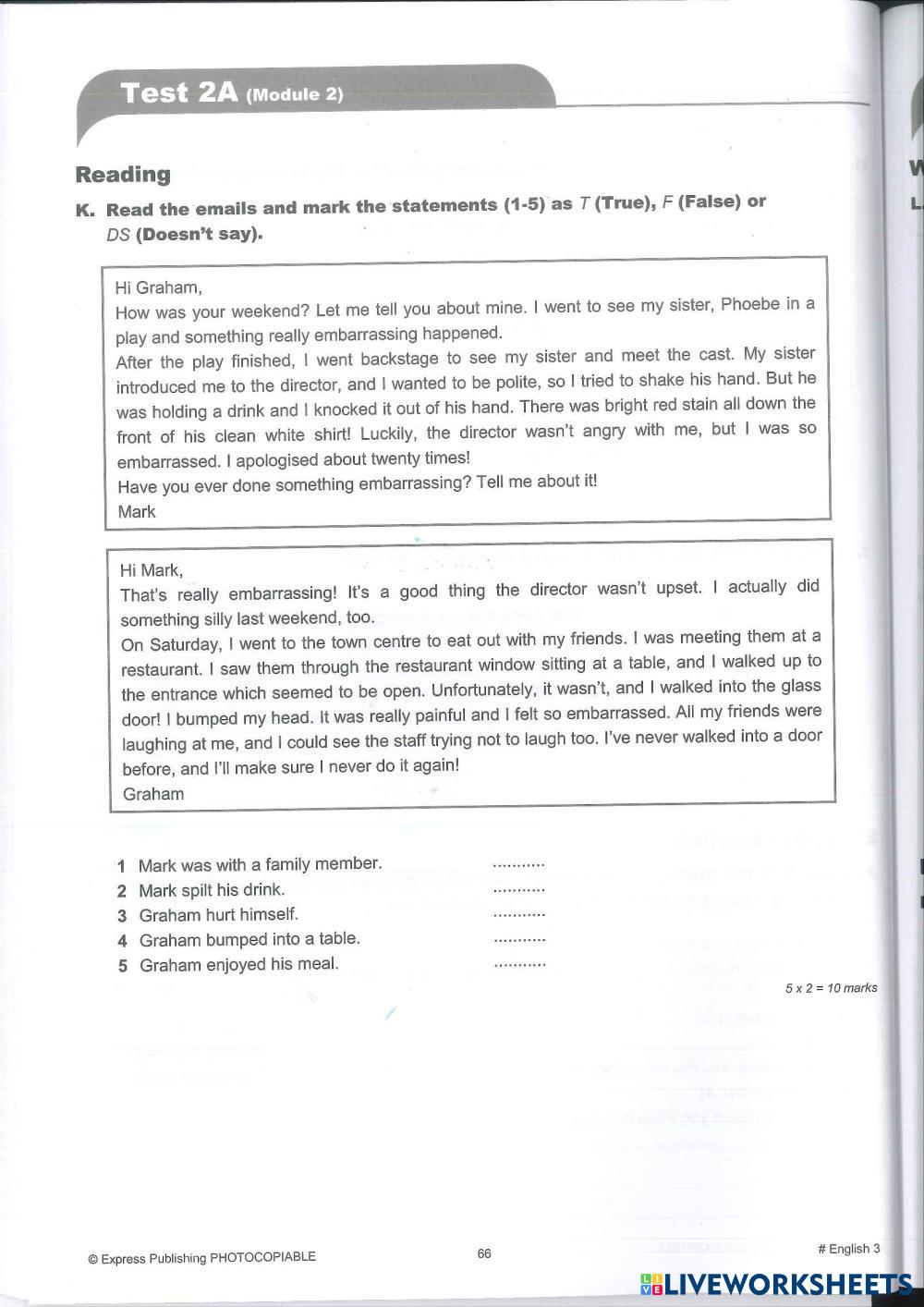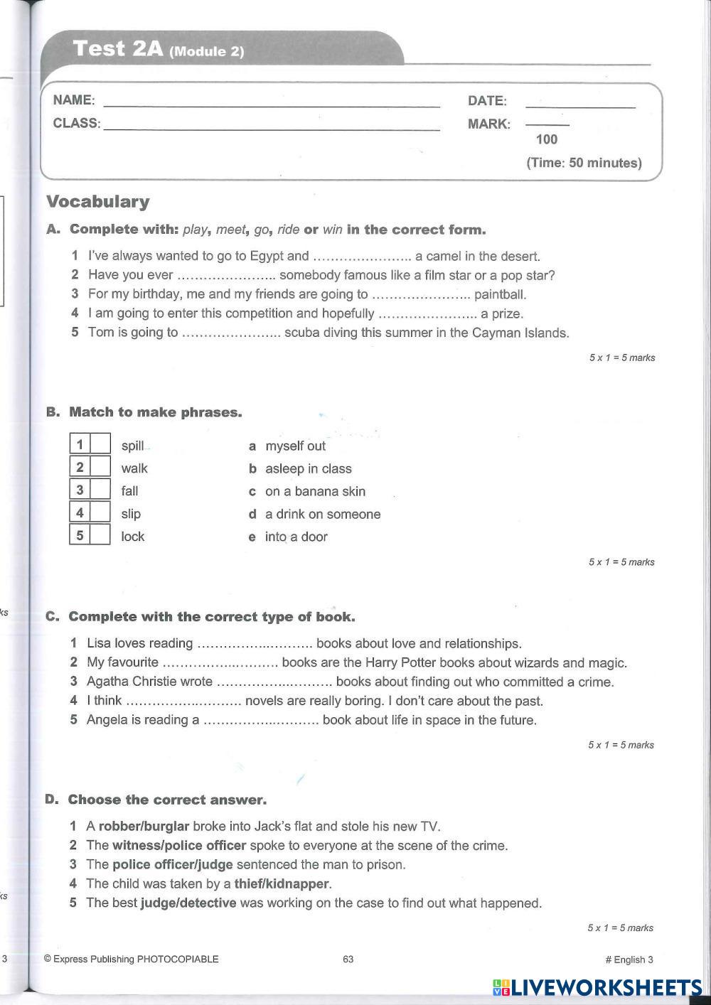 Created byEVI ANDRIOPOULOU Test Test Age 10-14 level: C Senior English Author's Instructions My Google Classroom Courses × 0 classes selected (0 students total) Quick Access Select all classes (0 classes) All Classes Loading courses... Cancel Share Share to selected Course __COURSE_NAME__ __STUDENT_NAME__ (__STUDENT_EMAIL__) #3 Module Test 2A Download Worksheet Validation Check my answers Emails my answers to my teacher Full name Group/level School subject Teacher's email or key code Close Submit Validating worksheet... (12) Your answers have been sent to your teacher. Good luck! OK We encountered an error submitting your answers. Please try again. OK Advertisement | Go Ad Free Created byEVI ANDRIOPOULOU Test Test Age 10-14 level: C Senior English Author's Instructions