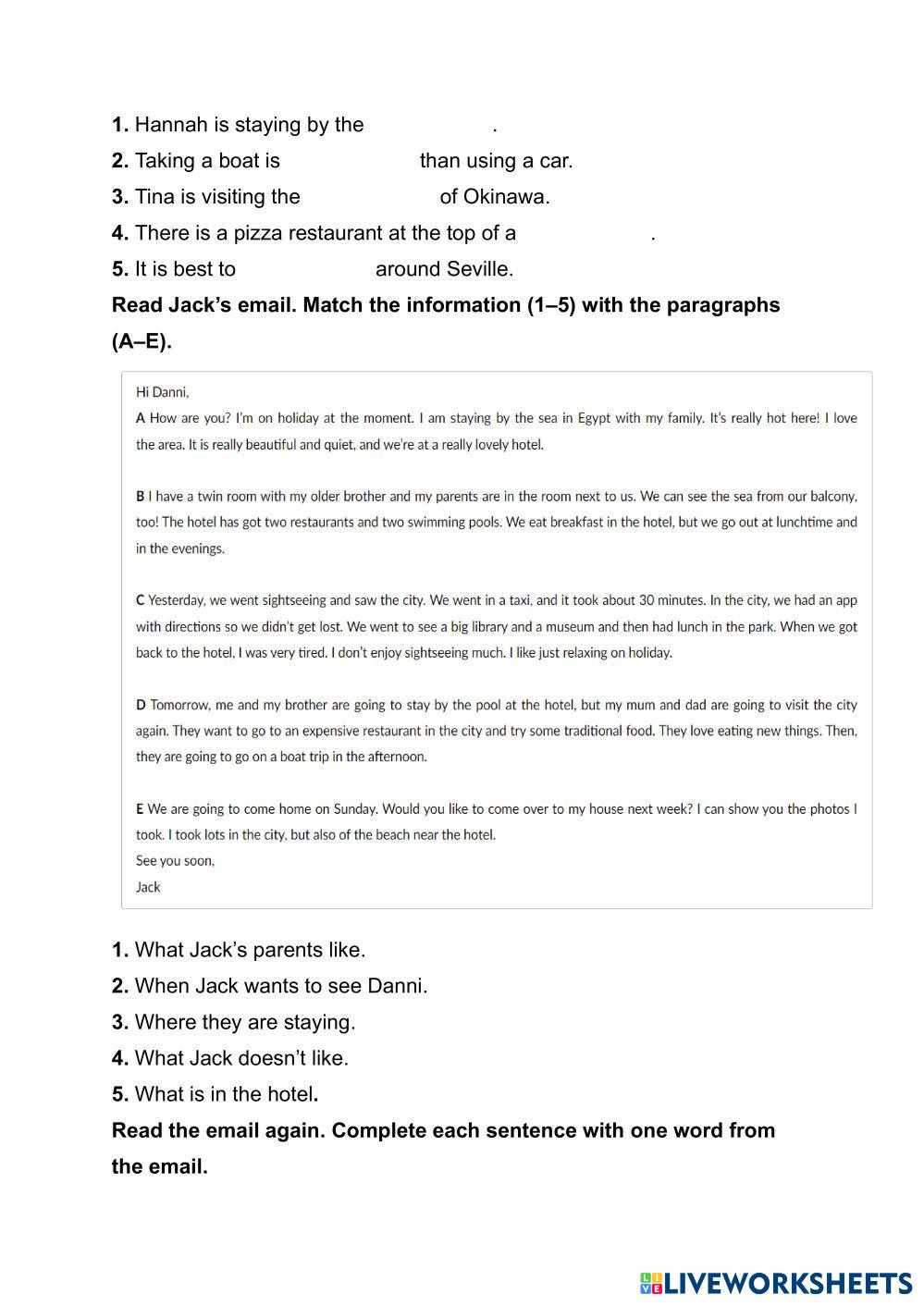 Created by Leadertalkseducation Unit 8 Unit 8 Age 14+ level: Easy English Author's Instructions My Google Classroom Courses × 0 classes selected (0 students total) Quick Access Select all classes (0 classes) All Classes Loading courses... Cancel Share Share to selected Course __COURSE_NAME__ __STUDENT_NAME__ (__STUDENT_EMAIL__) UNIT 8 Download Worksheet Validation Check my answers Emails my answers to my teacher Full name Group/level School subject Teacher's email or key code Close Submit Validating worksheet... (12) Your answers have been sent to your teacher. Good luck! OK We encountered an error submitting your answers. Please try again. OK Advertisement | Go Ad Free Created by Leadertalkseducation Unit 8 Unit 8 Age 14+ level: Easy English Author's Instructions