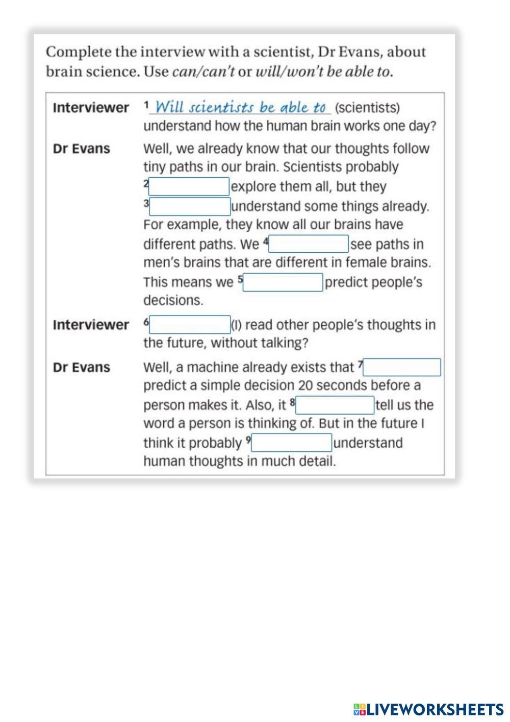 Created byRocio G. ability ability Age 18+ level: intermediate Spanish Author's Instructions . My Google Classroom Courses × 0 classes selected (0 students total) Quick Access Select all classes (0 classes) All Classes Loading courses... Cancel Share Share to selected Course __COURSE_NAME__ __STUDENT_NAME__ (__STUDENT_EMAIL__) ability Download Worksheet Validation Check my answers Emails my answers to my teacher Full name Group/level School subject Teacher's email or key code Close Submit Validating worksheet... (12) Your answers have been sent to your teacher. Good luck! OK We encountered an error submitting your answers. Please try again. OK Advertisement | Go Ad Free Created byRocio G. ability ability Age 18+ level: intermediate Spanish Author's Instructions .