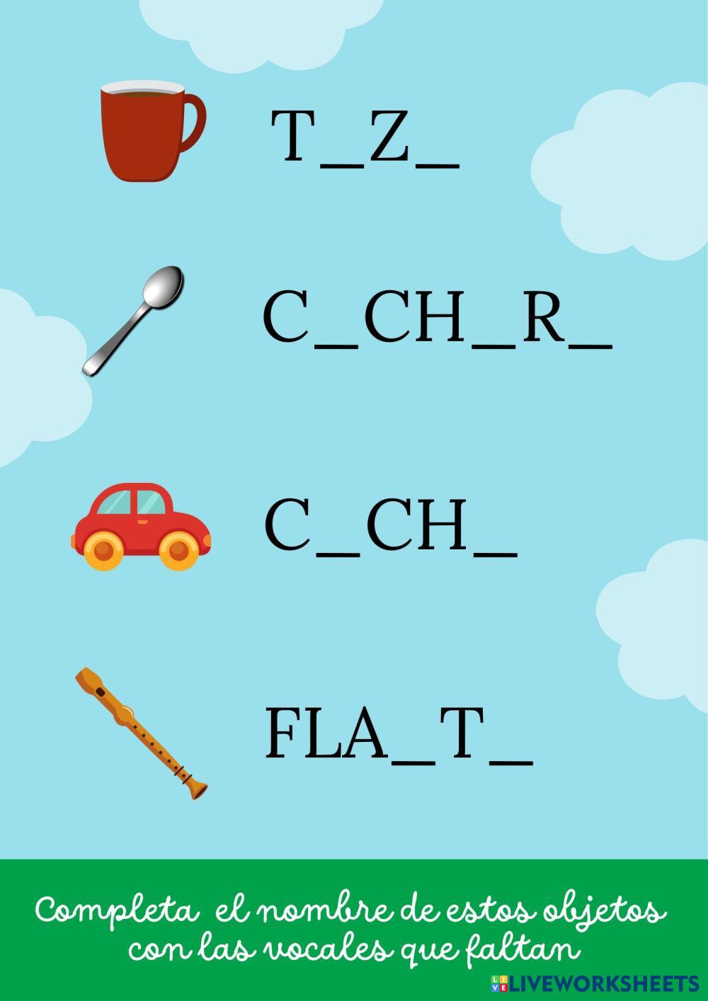 Created byAlba Rocha Bravo Ciencias de la Naturaleza letras Age 4-9 level: 2º CICLO ED INFATIL Spanish Author's Instructions My Google Classroom Courses × 0 classes selected (0 students total) Quick Access Select all classes (0 classes) All Classes Loading courses... Cancel Share Share to selected Course __COURSE_NAME__ __STUDENT_NAME__ (__STUDENT_EMAIL__) Completa las vocales Download Worksheet Validation Check my answers Emails my answers to my teacher Full name Group/level School subject Teacher's email or key code Close Submit Validating worksheet... (12) Your answers have been sent to your teacher. Good luck! OK We encountered an error submitting your answers. Please try again. OK Advertisement | Go Ad Free Created byAlba Rocha Bravo Ciencias de la Naturaleza letras Age 4-9 level: 2º CICLO ED INFATIL Spanish Author's Instructions