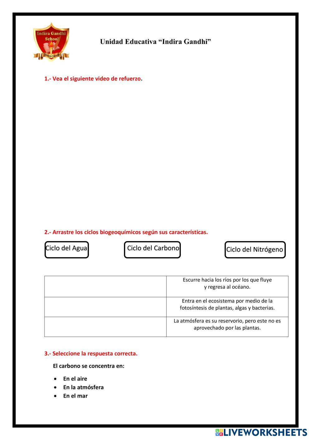 Created byGabriel Omar Villalba Quinde Ciencias de la Naturaleza Ciclos biogeoquímicos Age 14-16 level: 10mo Spanish Author's Instructions My Google Classroom Courses × 0 classes selected (0 students total) Quick Access Select all classes (0 classes) All Classes Loading courses... Cancel Share Share to selected Course __COURSE_NAME__ __STUDENT_NAME__ (__STUDENT_EMAIL__) Ciclos Biogeoquímicos Download Worksheet Validation Check my answers Emails my answers to my teacher Full name Group/level School subject Teacher's email or key code Close Submit Validating worksheet... (12) Your answers have been sent to your teacher. Good luck! OK We encountered an error submitting your answers. Please try again. OK Advertisement | Go Ad Free Created byGabriel Omar Villalba Quinde Ciencias de la Naturaleza Ciclos biogeoquímicos Age 14-16 level: 10mo Spanish Author's Instructions