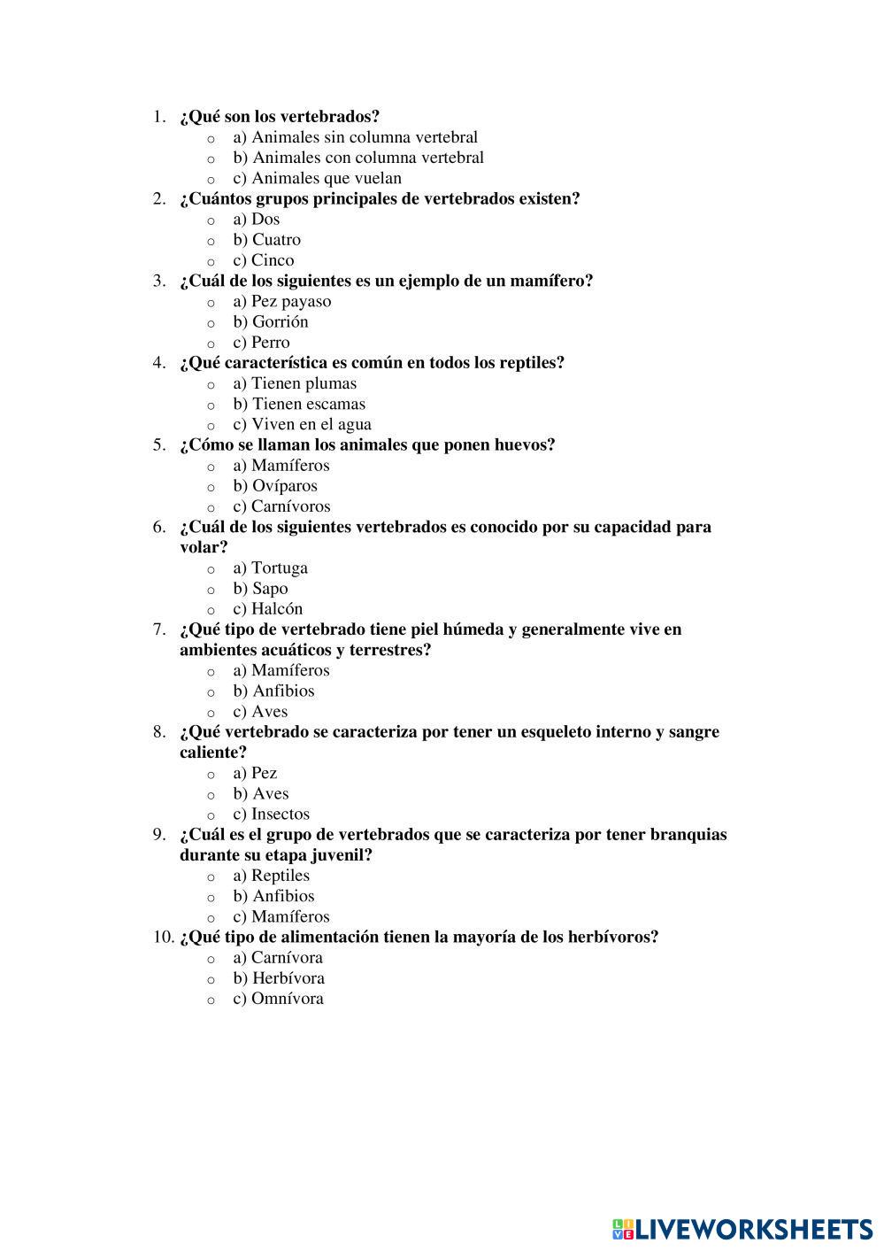 Animales vertebrados