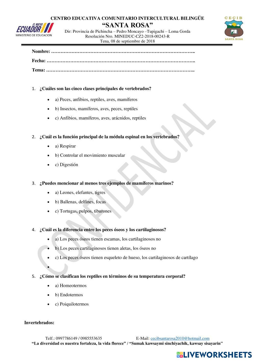 Created by LEONELA87 CIENCIAS NATURALES Ciclo reproductivo Age 10-15 level: Séptimo Spanish Author's Instructions My Google Classroom Courses × 0 classes selected (0 students total) Quick Access Select all classes (0 classes) All Classes Loading courses... Cancel Share Share to selected Course __COURSE_NAME__ __STUDENT_NAME__ (__STUDENT_EMAIL__) Animales vertebrados e invertebrados Download Worksheet Validation Check my answers Emails my answers to my teacher Full name Group/level School subject Teacher's email or key code Close Submit Validating worksheet... (12) Your answers have been sent to your teacher. Good luck! OK We encountered an error submitting your answers. Please try again. OK Advertisement | Go Ad Free Created by LEONELA87 CIENCIAS NATURALES Ciclo reproductivo Age 10-15 level: Séptimo Spanish Author's Instructions