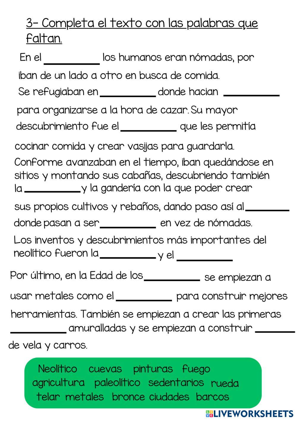 Ficha de repaso sobre la prehistoria para los primeros ciclos de primaria