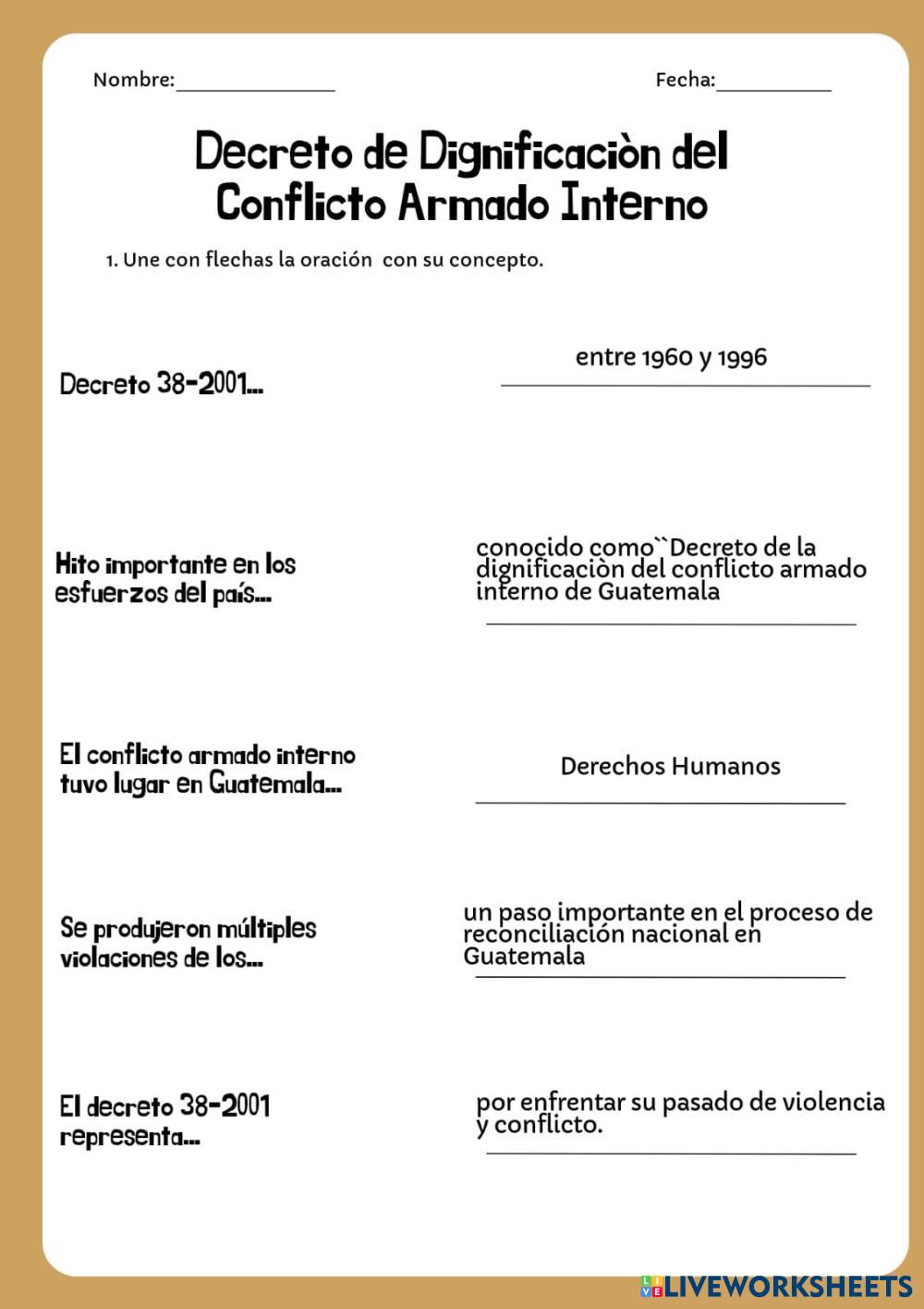 Created byCarlos Robles Ciencias Sociales Decreto de dignificación Age 14+ level: 9 Spanish Author's Instructions My Google Classroom Courses × 0 classes selected (0 students total) Quick Access Select all classes (0 classes) All Classes Loading courses... Cancel Share Share to selected Course __COURSE_NAME__ __STUDENT_NAME__ (__STUDENT_EMAIL__) Decreto de dignificación del conflicto armado interno Download Worksheet Validation Check my answers Emails my answers to my teacher Full name Group/level School subject Teacher's email or key code Close Submit Validating worksheet... (12) Your answers have been sent to your teacher. Good luck! OK We encountered an error submitting your answers. Please try again. OK Advertisement | Go Ad Free Created byCarlos Robles Ciencias Sociales Decreto de dignificación Age 14+ level: 9 Spanish Author's Instructions