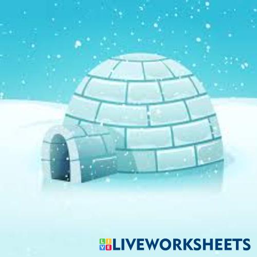 Identifica a cuál dibujo pertenece las siguientes palabras: casa, edificio, iglú, cabaña, castillo