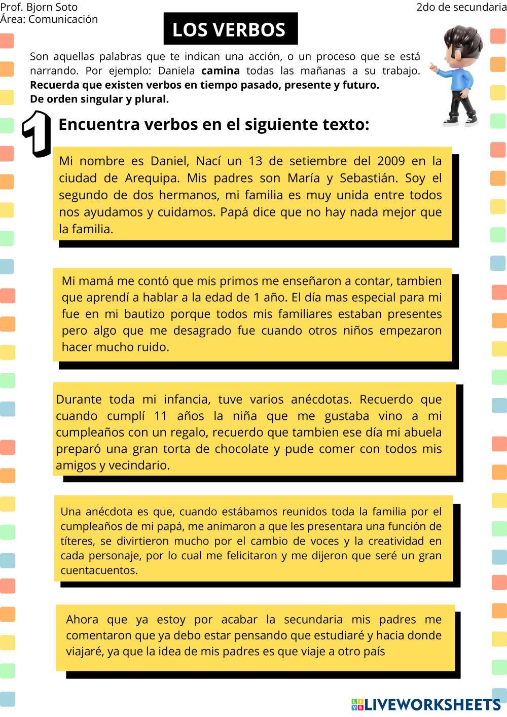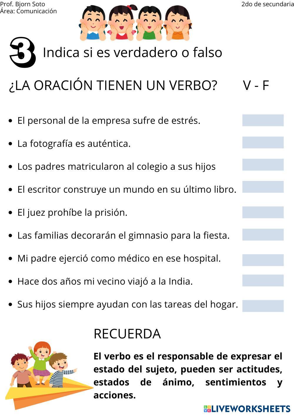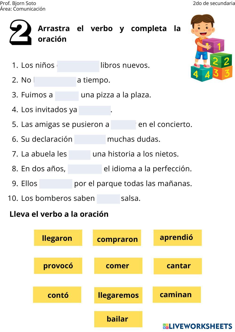 Created byBjorn Yohaner Daniel Soto Mamani Comunicación y lenguaje Ejercicios Age 12-16 level: 2do Spanish Author's Instructions My Google Classroom Courses × 0 classes selected (0 students total) Quick Access Select all classes (0 classes) All Classes Loading courses... Cancel Share Share to selected Course __COURSE_NAME__ __STUDENT_NAME__ (__STUDENT_EMAIL__) PRÁCTICA DE LOS VERBOS Download Worksheet Validation Check my answers Emails my answers to my teacher Full name Group/level School subject Teacher's email or key code Close Submit Validating worksheet... (12) Your answers have been sent to your teacher. Good luck! OK We encountered an error submitting your answers. Please try again. OK Advertisement | Go Ad Free Created byBjorn Yohaner Daniel Soto Mamani Comunicación y lenguaje Ejercicios Age 12-16 level: 2do Spanish Author's Instructions