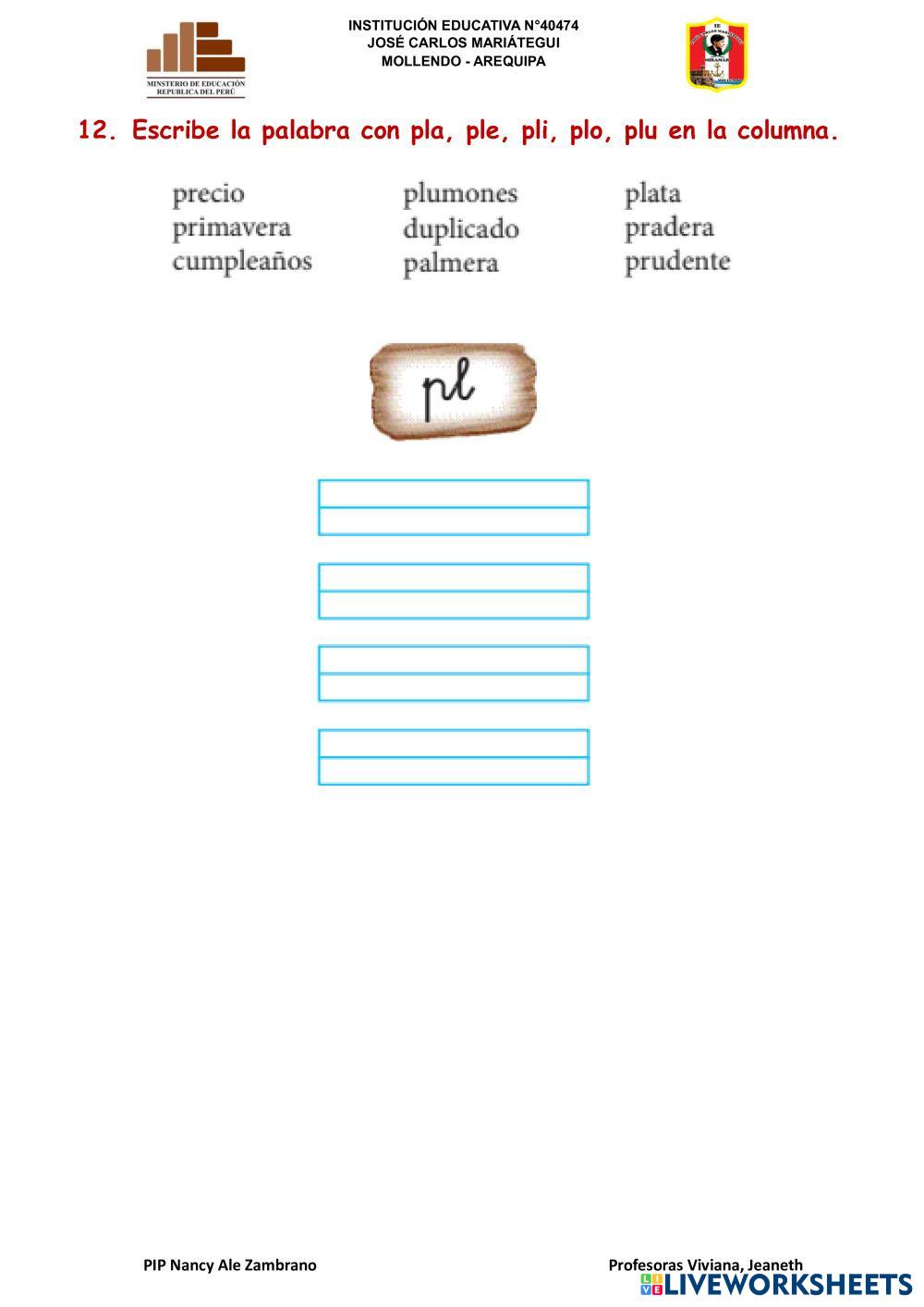 lectura y escritura con pla, ple, pli, plo, plu 2023
