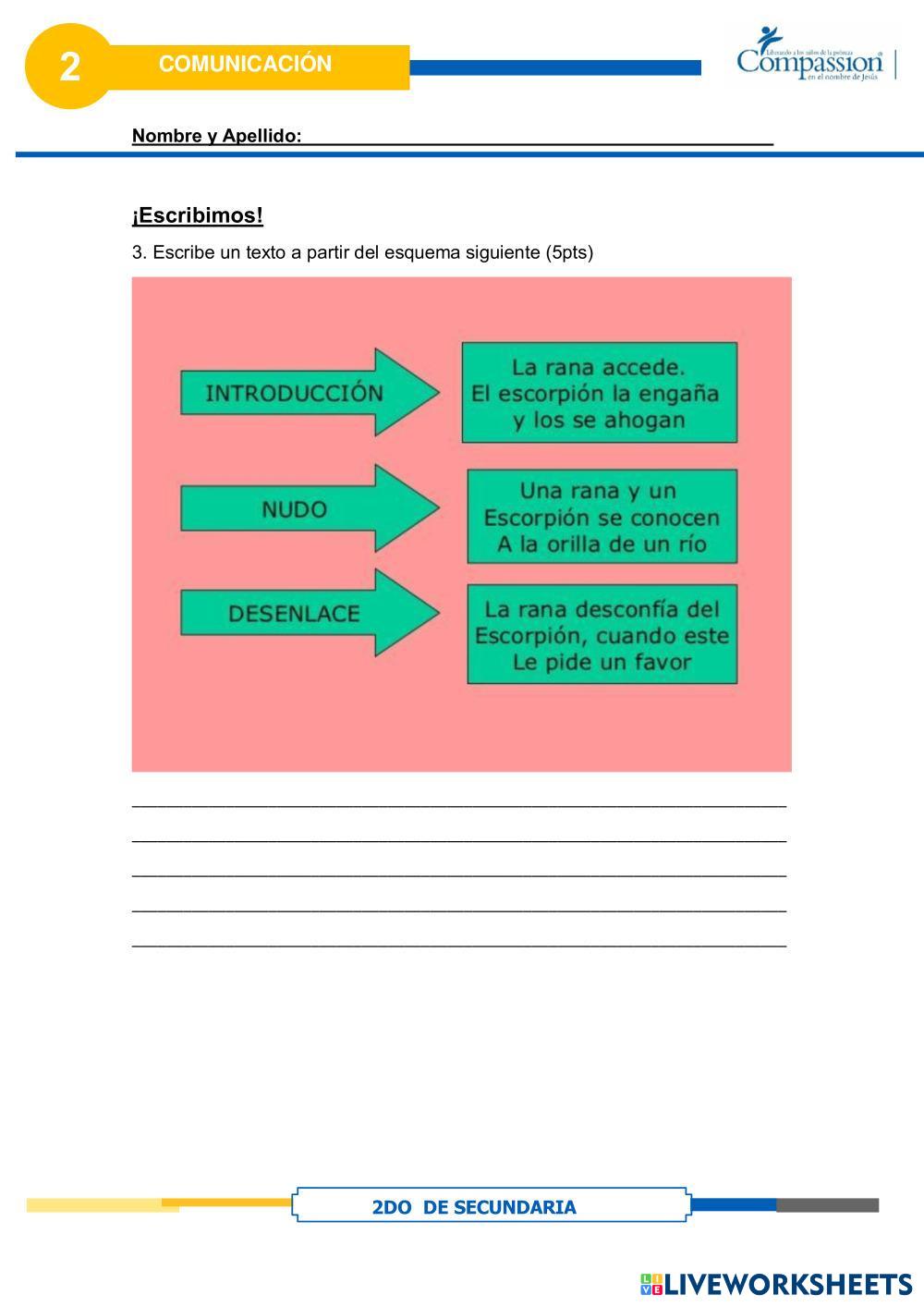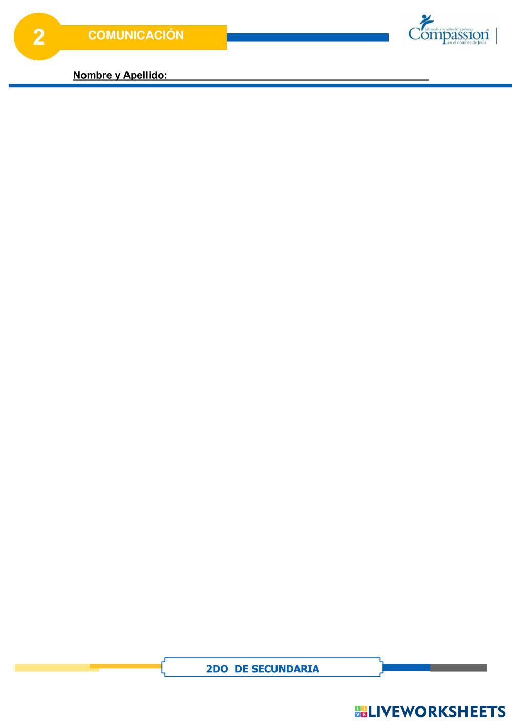 Created byCompassion international del Perú Comunicación Elaborando un esquema Age 12-17 level: 2do Secundaria Spanish Author's Instructions My Google Classroom Courses × 0 classes selected (0 students total) Quick Access Select all classes (0 classes) All Classes Loading courses... Cancel Share Share to selected Course __COURSE_NAME__ __STUDENT_NAME__ (__STUDENT_EMAIL__) Elaborando un esquema Download Worksheet Validation Check my answers Emails my answers to my teacher Full name Group/level School subject Teacher's email or key code Close Submit Validating worksheet... (12) Your answers have been sent to your teacher. Good luck! OK We encountered an error submitting your answers. Please try again. OK Advertisement | Go Ad Free Created byCompassion international del Perú Comunicación Elaborando un esquema Age 12-17 level: 2do Secundaria Spanish Author's Instructions