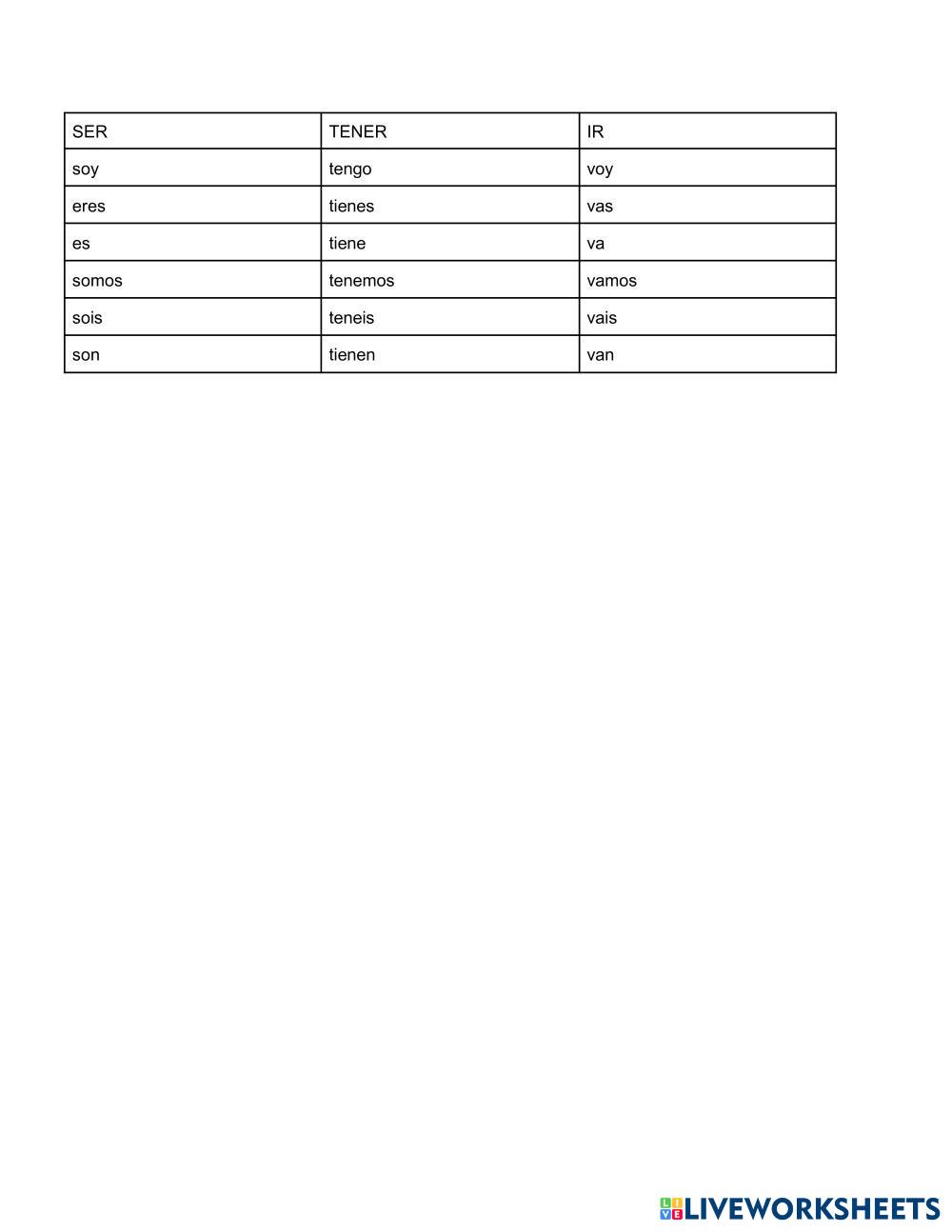 Created byms. chief kweef Conjugation Conjugation Age 13-17 level: 8 Spanish Author's Instructions My Google Classroom Courses × 0 classes selected (0 students total) Quick Access Select all classes (0 classes) All Classes Loading courses... Cancel Share Share to selected Course __COURSE_NAME__ __STUDENT_NAME__ (__STUDENT_EMAIL__) Conjugation Download Worksheet Validation Check my answers Emails my answers to my teacher Full name Group/level School subject Teacher's email or key code Close Submit Validating worksheet... (12) Your answers have been sent to your teacher. Good luck! OK We encountered an error submitting your answers. Please try again. OK Advertisement | Go Ad Free Created byms. chief kweef Conjugation Conjugation Age 13-17 level: 8 Spanish Author's Instructions