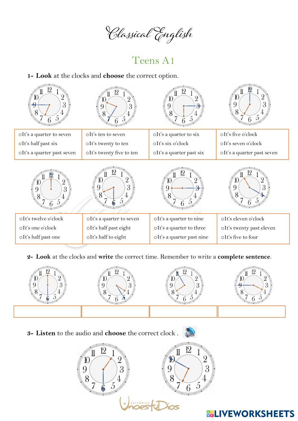 Created byMercedes Fiorotto EFL time Age 7-16 level: beginner Spanish Author's Instructions My Google Classroom Courses × 0 classes selected (0 students total) Quick Access Select all classes (0 classes) All Classes Loading courses... Cancel Share Share to selected Course __COURSE_NAME__ __STUDENT_NAME__ (__STUDENT_EMAIL__) Time Download Worksheet Validation Check my answers Emails my answers to my teacher Full name Group/level School subject Teacher's email or key code Close Submit Validating worksheet... (12) Your answers have been sent to your teacher. Good luck! OK We encountered an error submitting your answers. Please try again. OK Advertisement | Go Ad Free Created byMercedes Fiorotto EFL time Age 7-16 level: beginner Spanish Author's Instructions