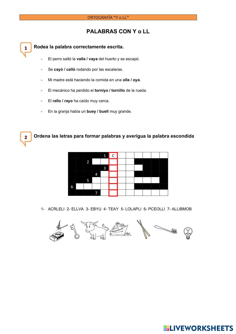 Realiza estas dos actividades sobre la Y y la LL. Ambas suenan igual, pero debes diferenciar según las palabras la utilización de una u otra.