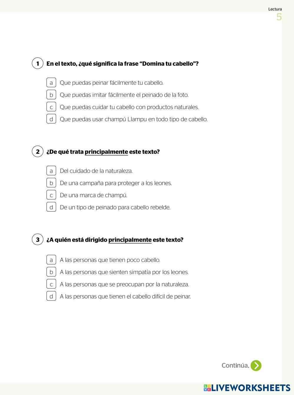 Comprensión de lectura: Las papas