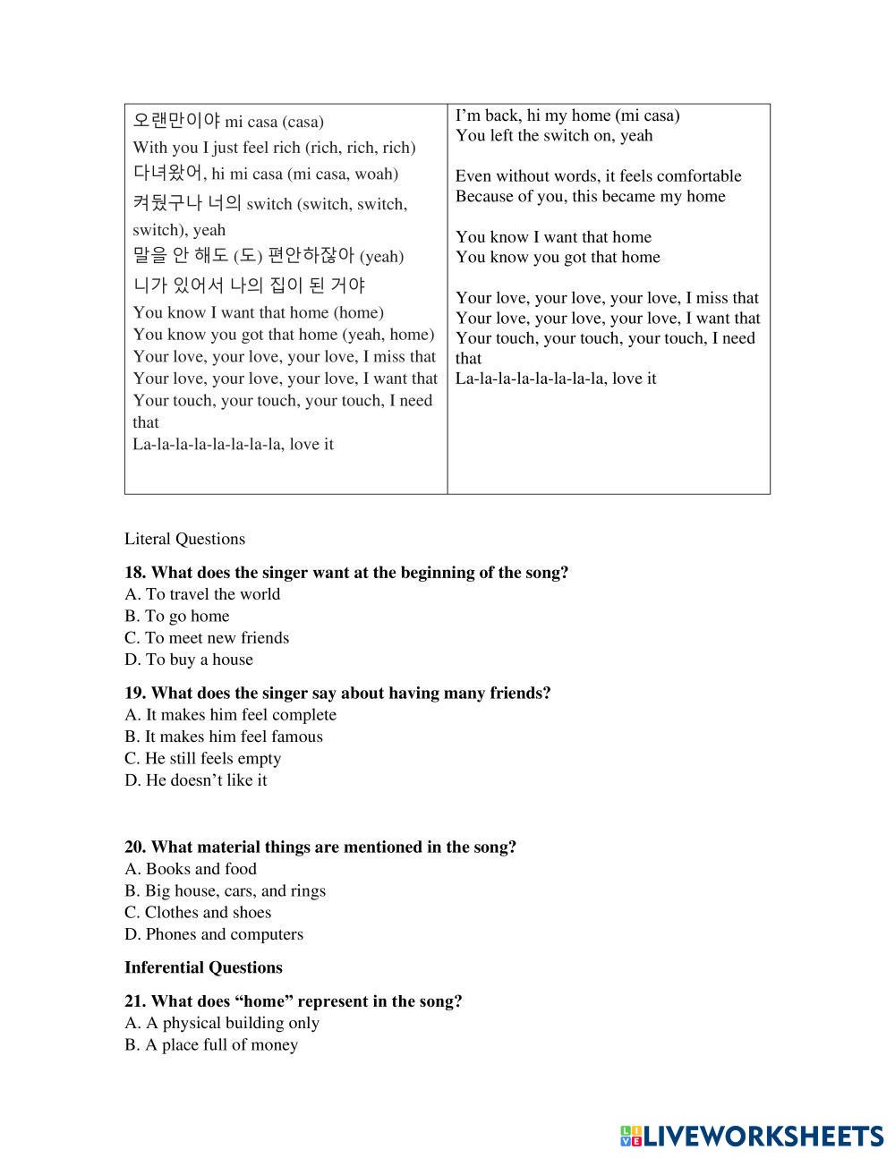 Explore Worksheets